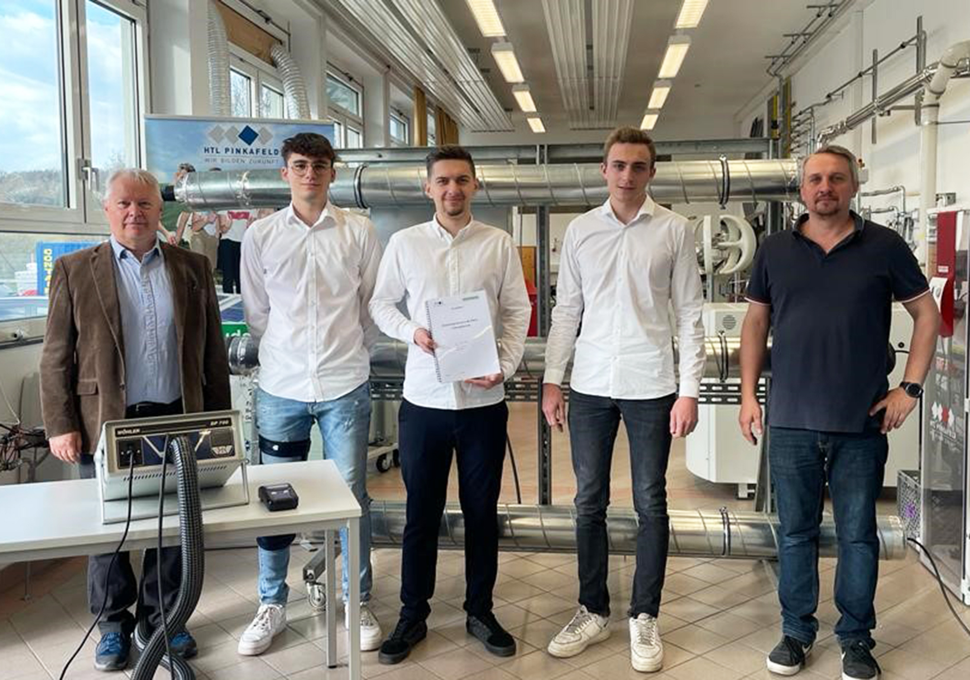 Um dieses Problem in den Griff zu bekommen haben sich die Gebäudetechnik-Maturanten Pascal Schuch, Kilian Wallner und Markus Zaunschirm in ihrer Diplomarbeit „Dichtheitsprüfung“ Gedanken gemacht und für das fachpraktische Labor von HTL Pinkafeld-Werkstättenlehrer BEd Thomas Lehner einen Prüfstand zur Messung der Luftdichtheit von Klima-Lüftungsanlagen geplant, gebaut und in Betrieb genommen. Weiters sollen damit auch die Energiekosten errechnet werden können.