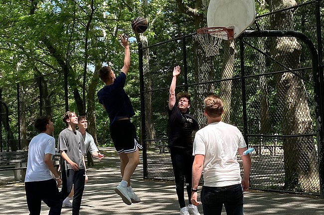 The group visited the 9/11 Museum and Memorial, the Empire State Building, South Street Seaport, walked on to the Brooklyn Bridge, hung out in Central Park, where the kids played some hoops and frisbee. The hotel was located around the corner from Times Square, with plenty of eateries and fun spots to be discovered on foot.