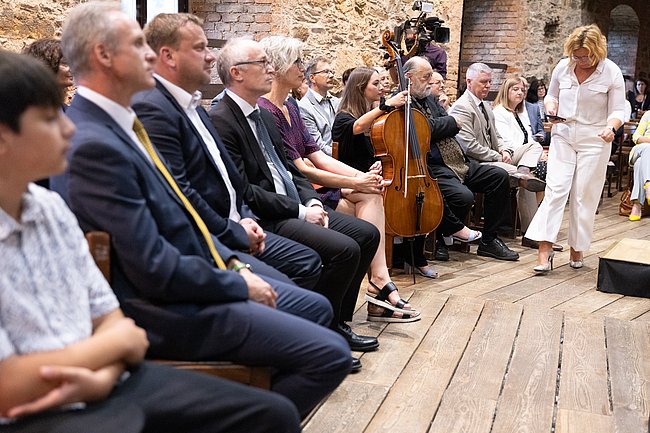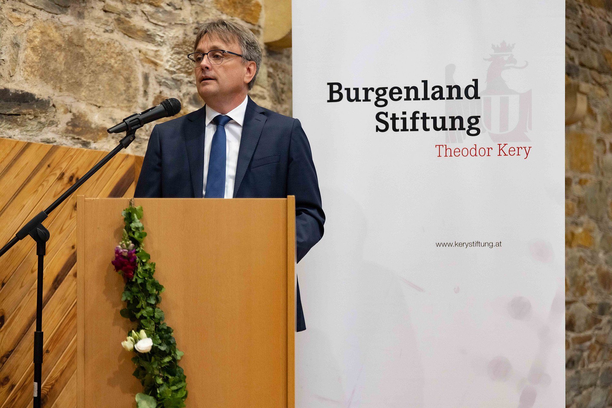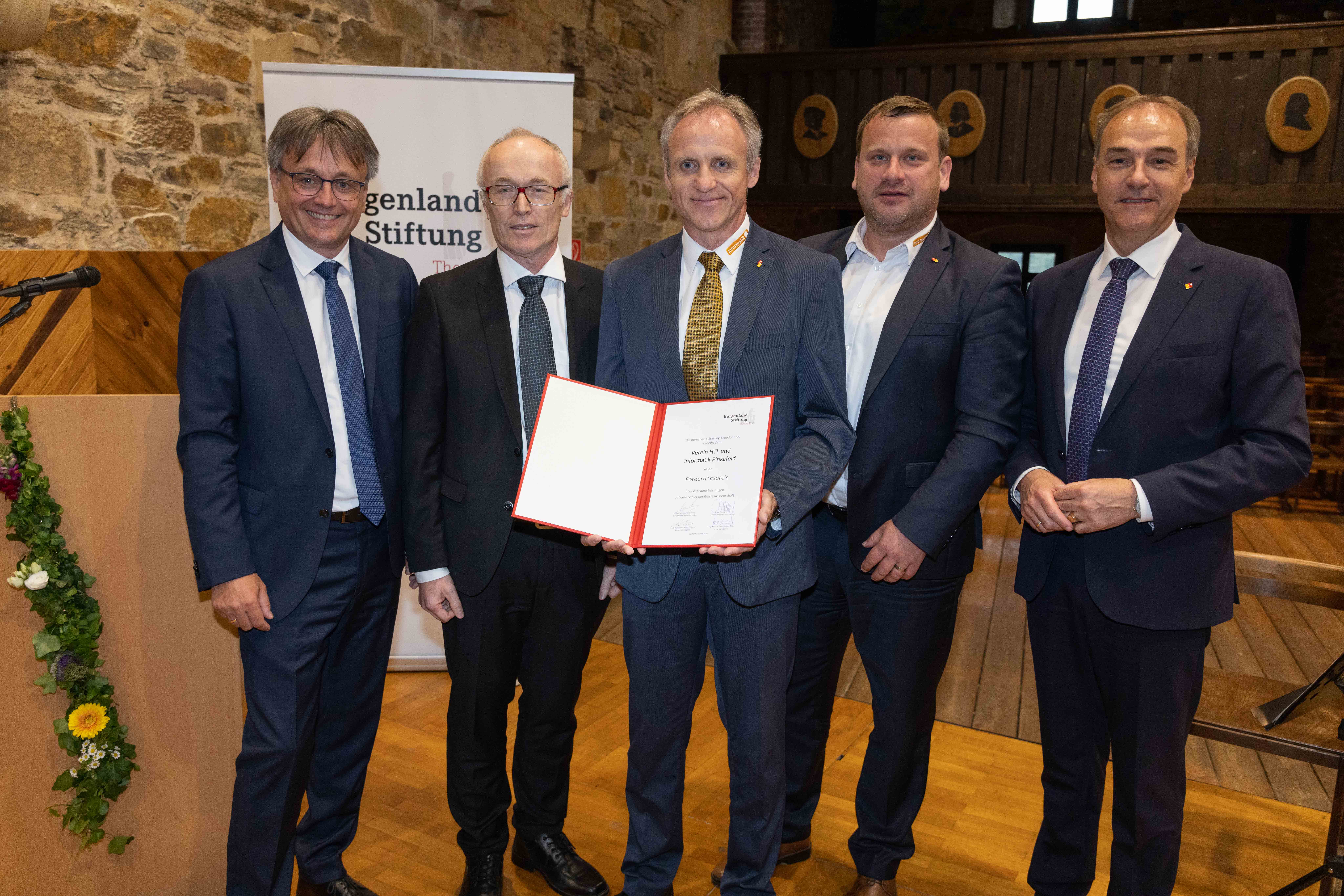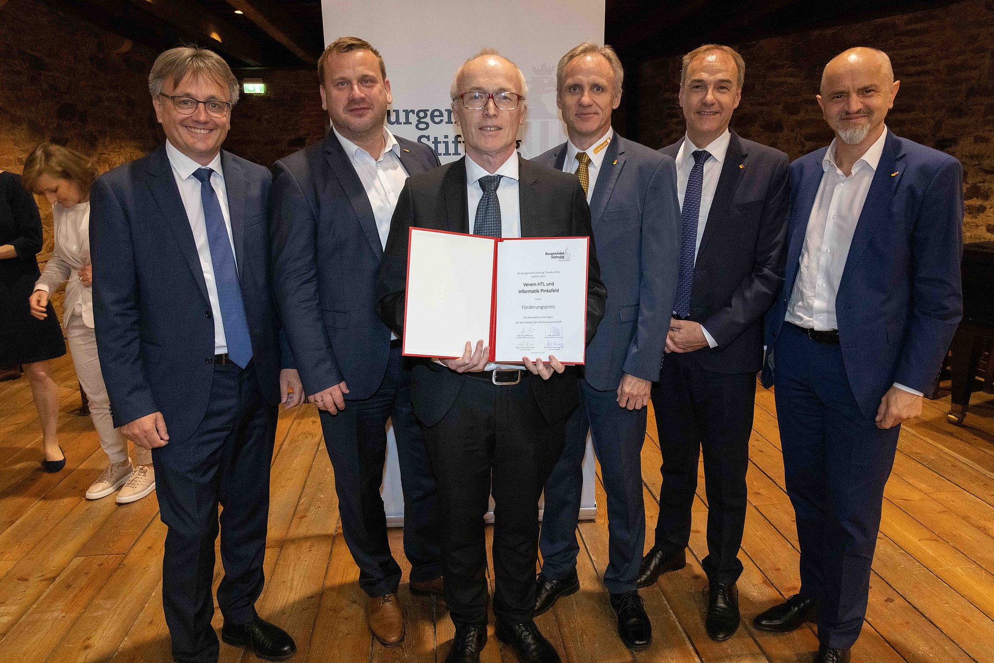 Am Mittwoch konnten Informatik-Abteilungsvorstand Thomas Gabriel, Diplomarbeitskoordinator Prof. Bernd Hochwarter und Projektbetreuer Prof. Heinz Bundschuh auf Burg Lockenhaus aus den Händen von Landesrat Leonhard Schneemann und Stiftungsvorstand Michael Gerbavsits den Förderpreis der Burgenland-Stiftung Theodor Kery in der Kategorie Geisteswissenschaft für die Diplomarbeit „Burgenland Emigration Database“ entgegennehmen. Als erster Gratulant stellte sich Bildungsdirektor HR Heinz Josef Zitz ein.