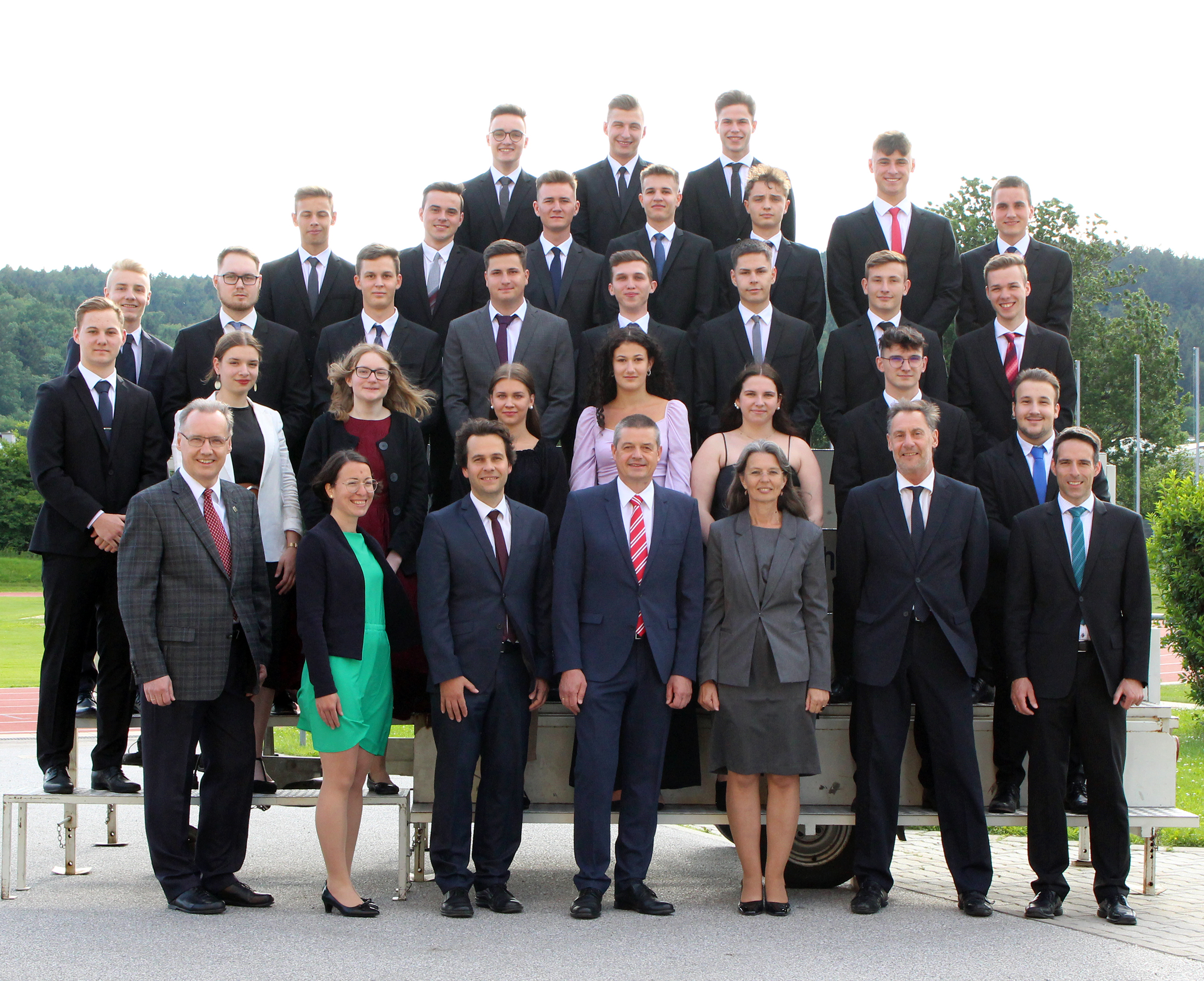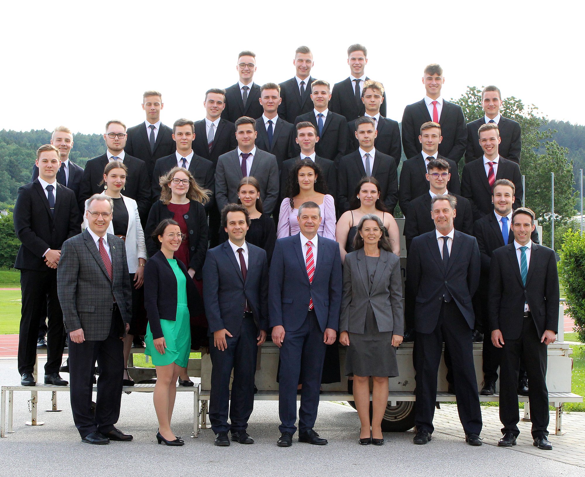 Die sieben Maturant*innen Martin Braun, Rainer Glavanovits, Martin Hammerl, Christoph Pfneizl, Andrea Plattl, Lukas Unger und Lukas Schweighofer sowie Kilian Kalcsics aus der Bautechnik-Fachschule absolvierten ihre Prüfungen mit ausgezeichnetem Erfolg, 17 weitere Absolvent*innen erreichten einen guten Erfolg. Die Jahrgangsvorstände Prof.in Judith Pimperl (5AHBTH), Johannes Feichtinger (5YHBTB/5YHBTT), Oskar Hable (4AFBTH) und Karl Friesenbichler (4AFBTH) freuten sich mit ihren Absolvent*innen über die herzeigbaren Erfolge.