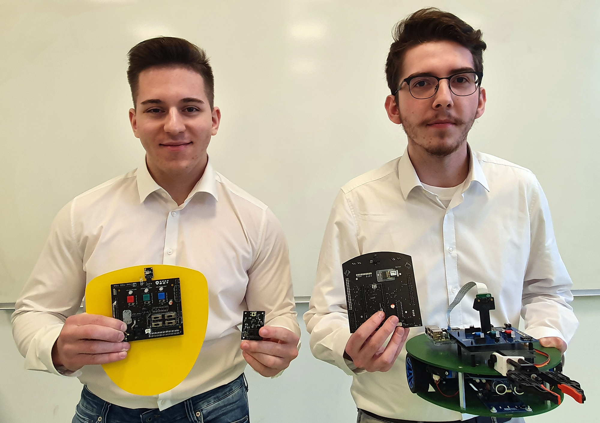 Im April wurde die Diplomarbeit „DropBot – Neuer Schulroboter der HTL Pinkafeld“ von den Elektronik-Maturanten Niklas Brückler und Oliver Singer an den Auftraggeber HTL Pinkafeld übergeben. Betreut wurde die Arbeit von Prof. Dipl.-Ing. Dietmar Scheiblhofer.