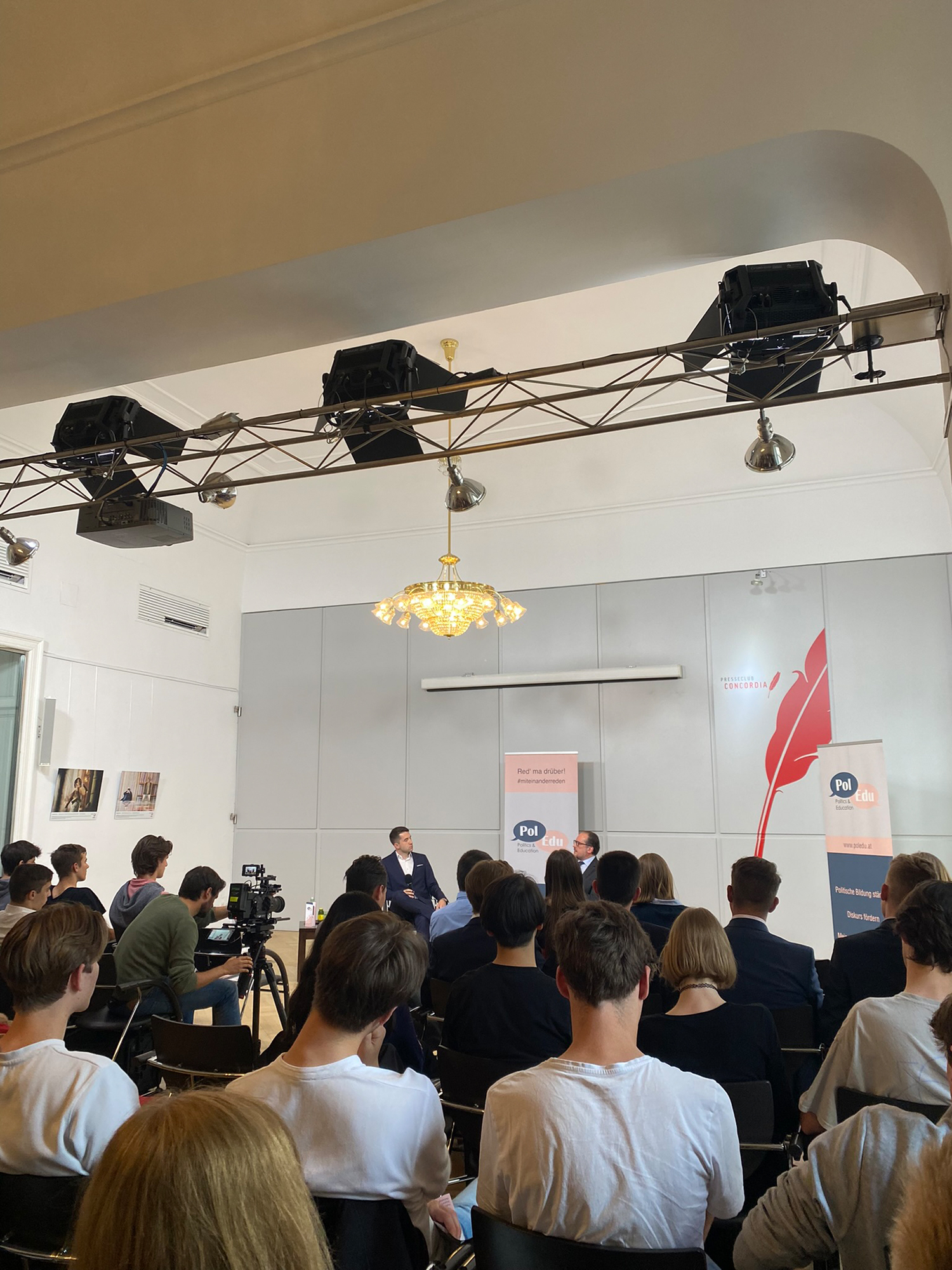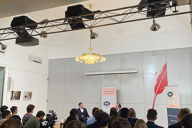In einem Workshop im Heeresgeschichtlichen Museum wurden die Schüler und Schülerinnen mit Methoden der Propaganda des Dritten Reiches bekannt gemacht. Eine facheinschlägige Vorlesung an der Universität sollte ihnen einen Einblick in den studentischen Alltag bieten, und anschließend konnten sich alle im Museum Albertina umsehen. Einige wählten die Sonderausstellung über Edvard Munch, andere interessierten sich für impressionistische Werke. Für den Abend hatte ein Schüler die Teilnahme an einer Diskussionsveranstaltung mit Außenminister Alexander Schallenberg organisieren können.