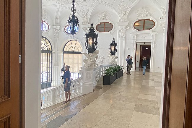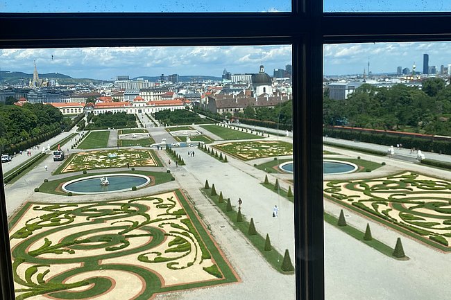 Der dritte Tag war am Vormittag einem ausführlichen Besuch des Technischen Museums gewidmet. Ein Spaziergang zum und durch die Anlage des Barockschlosses Schönbrunn zeigte die Prachtentfaltung des Barock. Anschließend ging es zum Oberen Belvedere, auf dessen Balkon Außenminister Figl 1955 den unterzeichneten Staatsvertrag den jubelnden ÖsterreicherInnen präsentiert hatte. Es war aber auch Gelegenheit, den Barockgarten des Prinzen Eugen zu bewundern und eines der Meisterwerke von Gustav Klimt, den „Kuss“, der jährlich Tausende von Besuchern von nah und fern in die Bundeshauptstadt lockt.
