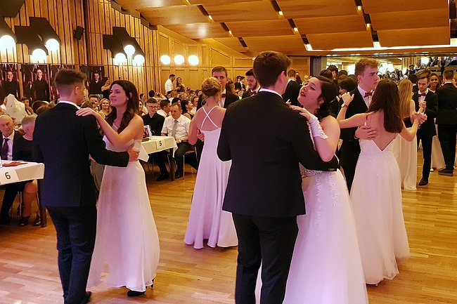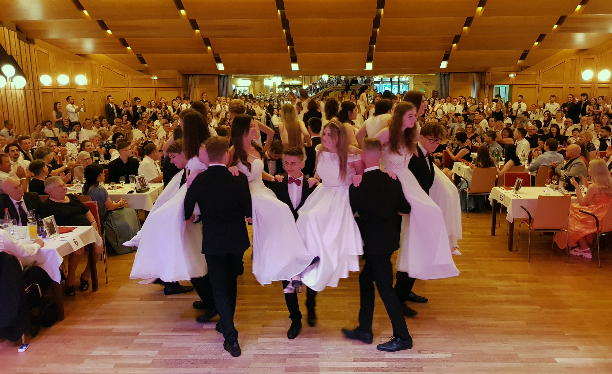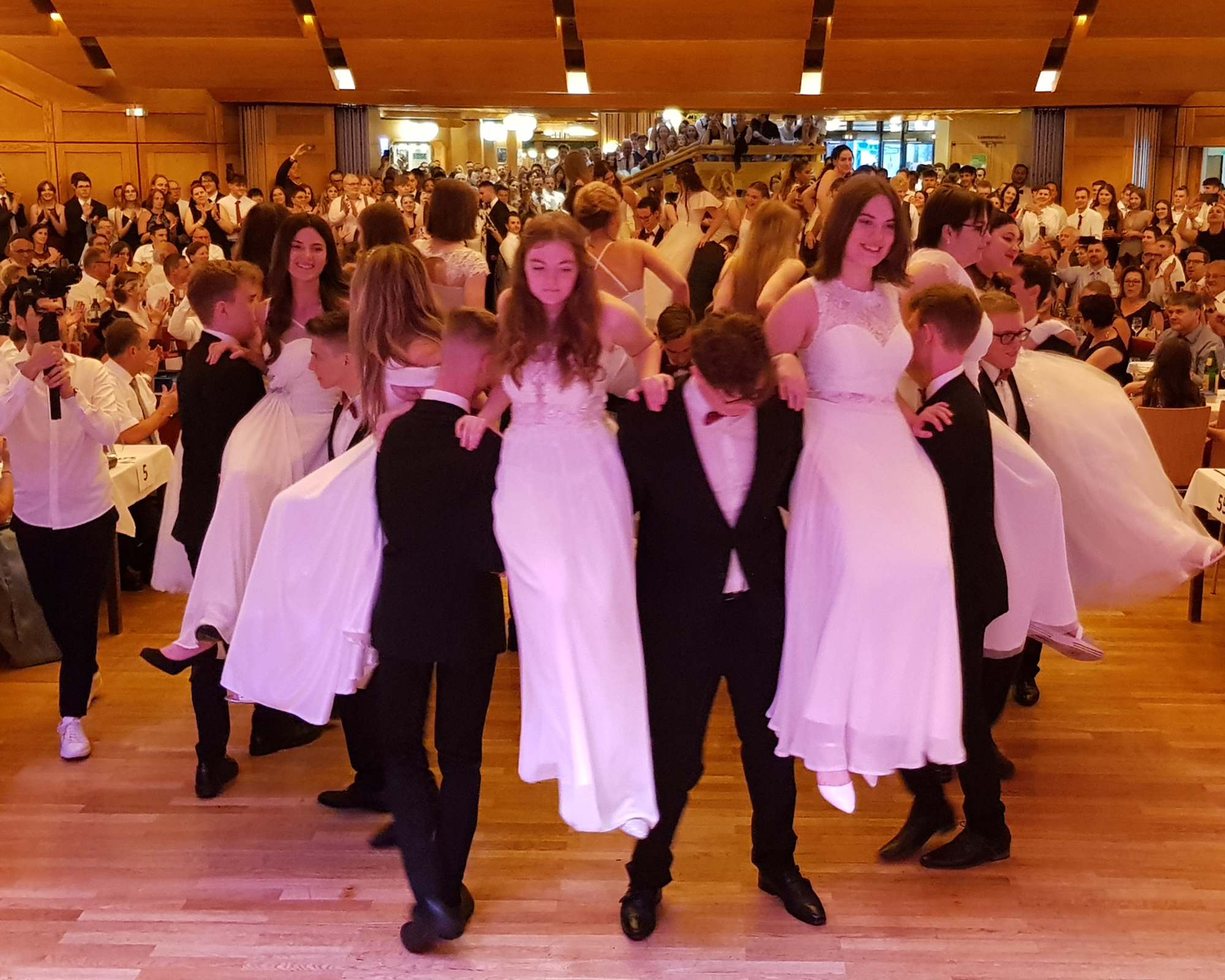 Mit dem Einzug und einer Polonaise, die von den zahlreich erschienenen Gästen mit großem Applaus bedacht wurden, begann der festliche Abend. Die Klassenvorstände Prof. Brigitte Karner und Prof. Jörg Zambo konnten gemeinsam mit Direktor Wilfried Lercher und Abteilungsvorstand Thomas Gabriel die Besucher herzlich willkommen heißen. Auch Pinkafelds Vizebürgermeister Franz Rechberger war der Einladung gefolgt und feierte mit.