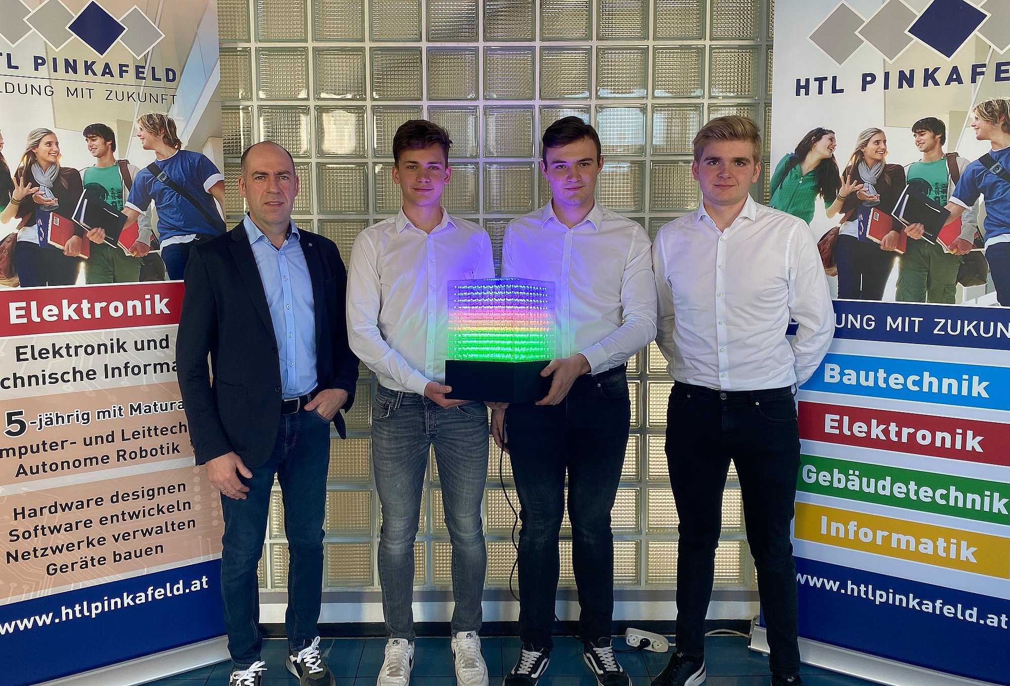 Bereits im April wurde die Diplomarbeit „RGB LED-Cube“ der Elektronik-Maturanten Maximilian Hofer, Daniel Schneider und Jakob Schlagbauer an den Auftraggeber HTL Pinkafeld übergeben.