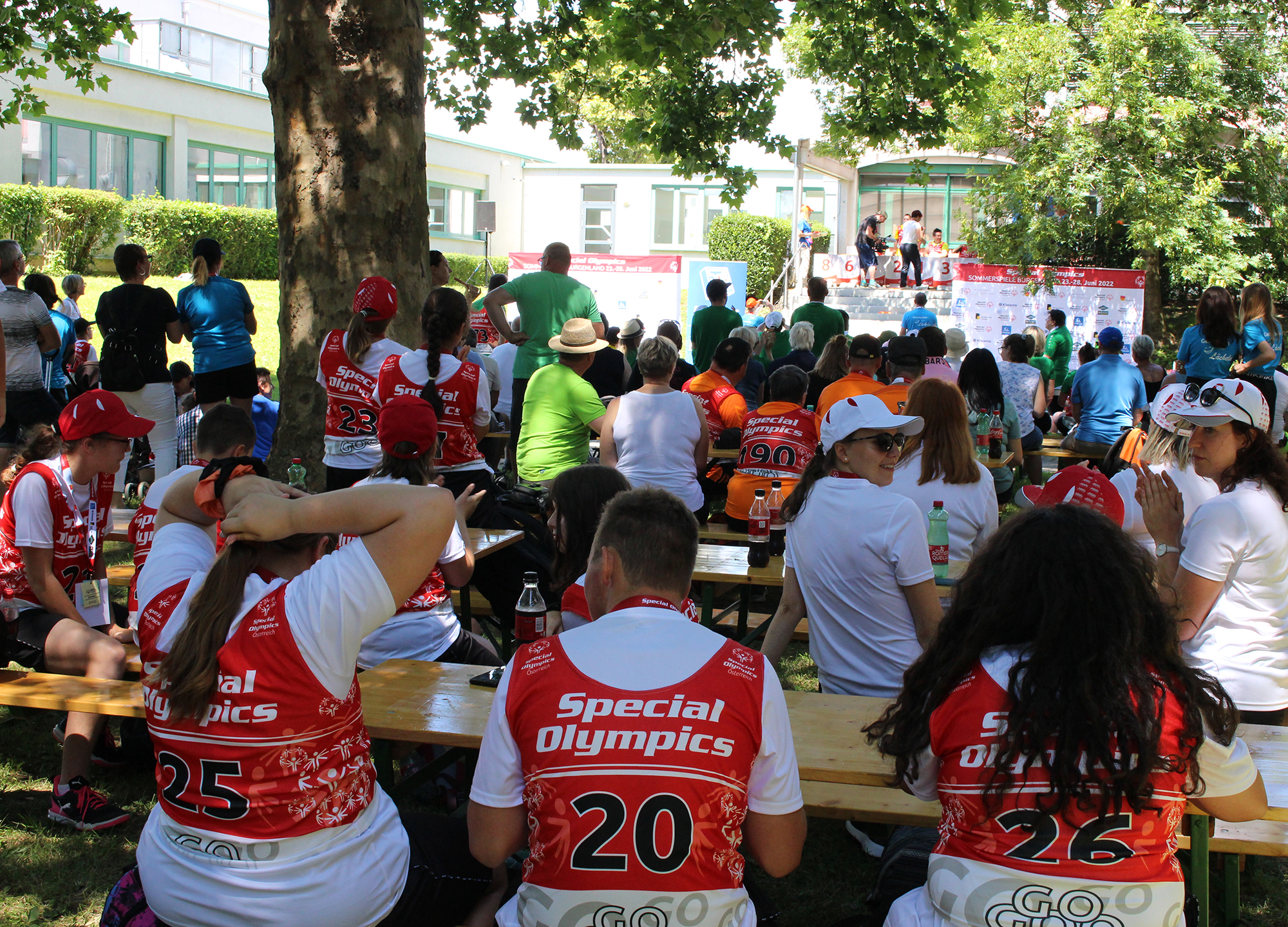 Bei der abschließenden Siegerehrung unter den schattenspendenden Platanen im HTL-Innenhof waren die hohen Temperaturen dann gut auszuhalten und es konnte mit voller Energie und Lautstärke allen Aufgerufenen applaudiert werden.