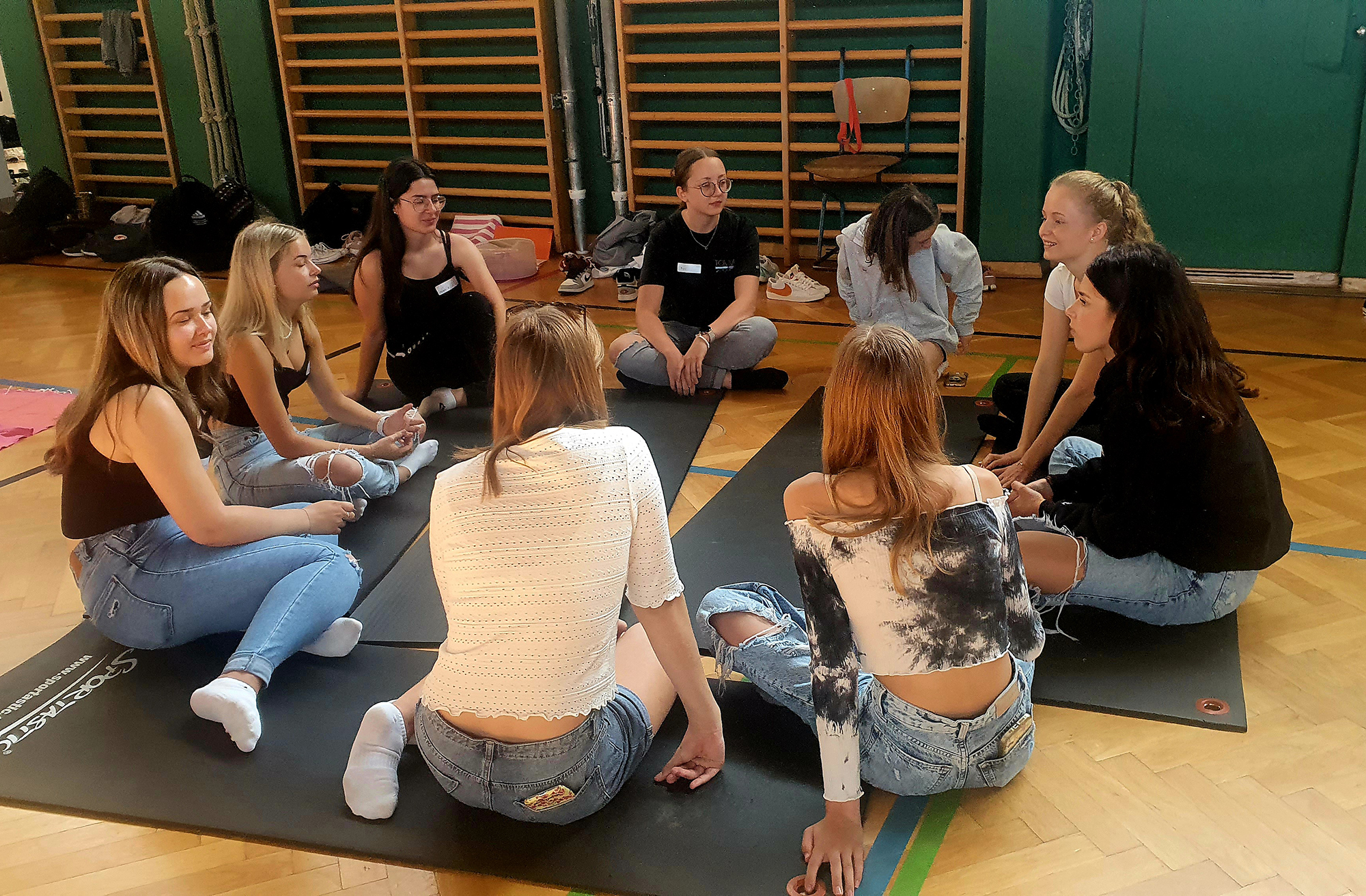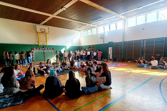 Nach Kennenlern- und Icebreaker-Spielen wurden die neuen Mädchen abteilungsweise durch die Schule geführt. Nach einer Jause unter den schattenspendenden Bäumen im Buffet-Innenhof der Schule bildete eine Führung rund um die Schule den passenden Abschluss.