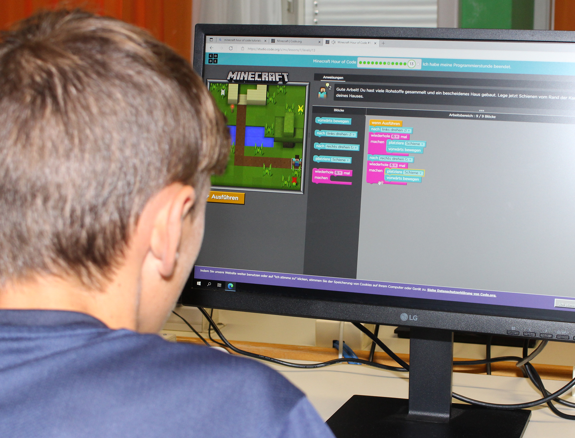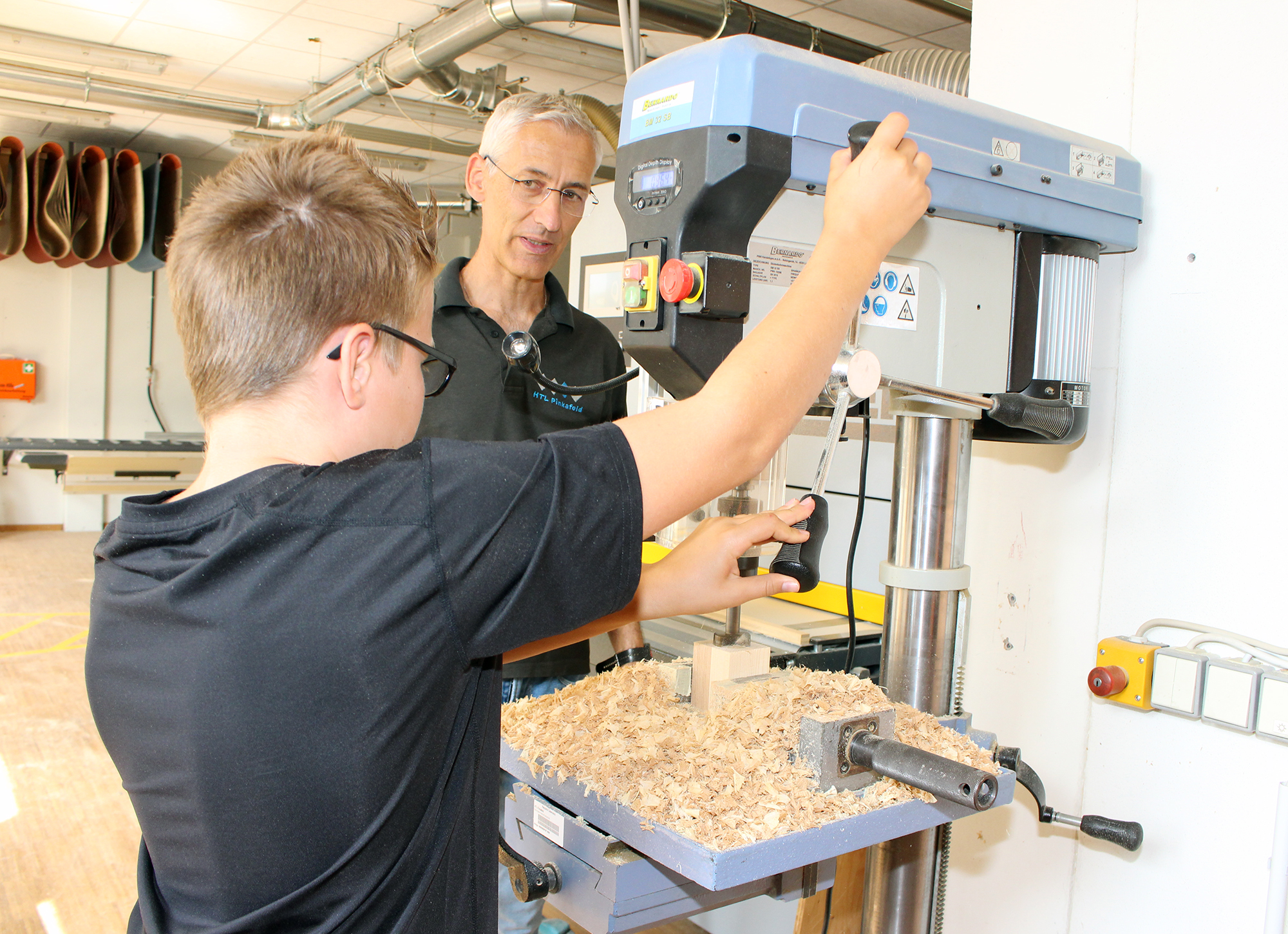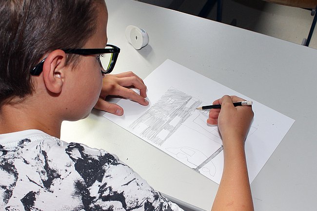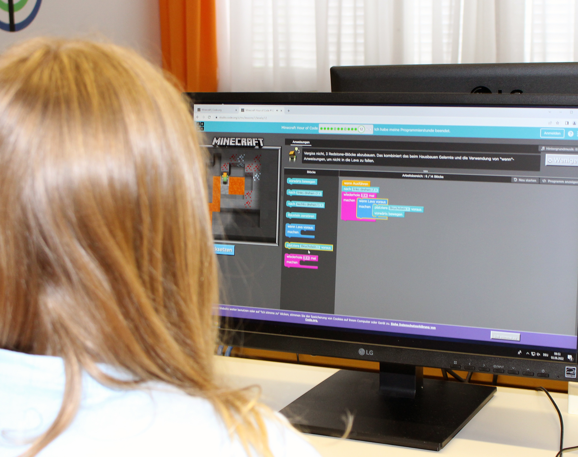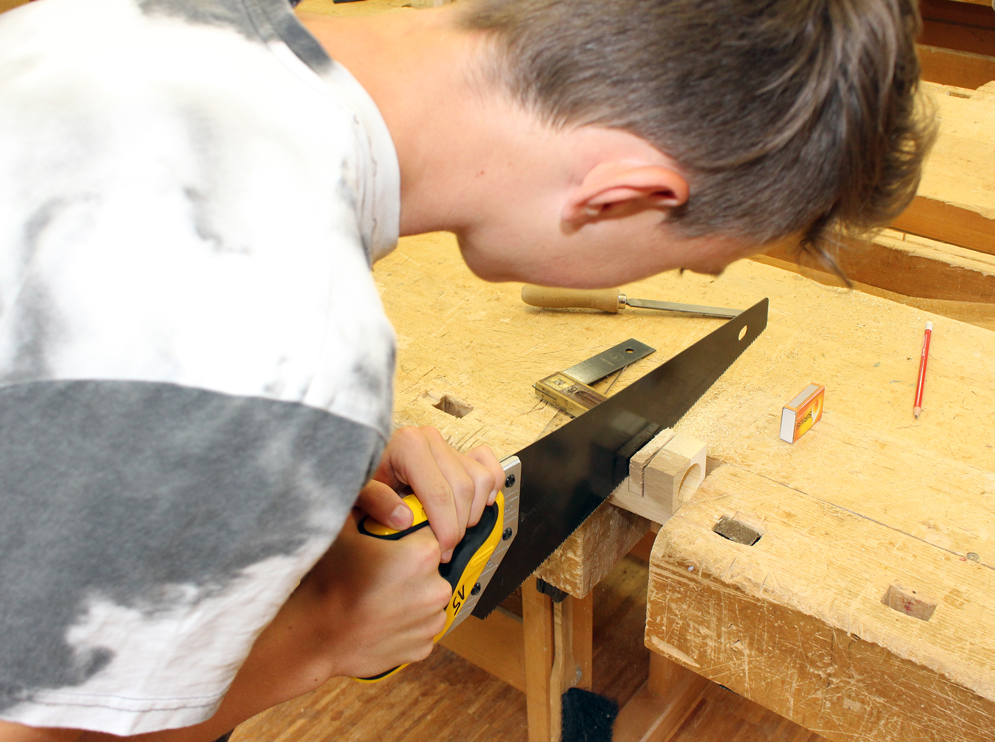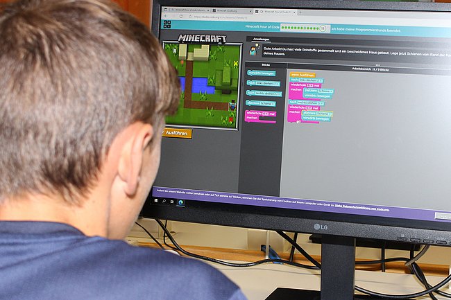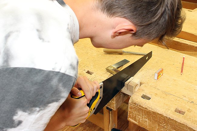 Am Mittwoch- und Donnerstagvormittag werden im Bauhof der Abt. Bautechnik und in den Labors und IT-Sälen der Abt. Informatik u.a. Holzelemente gefertigt und Minecraft-Welten erforscht.