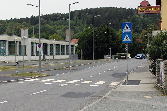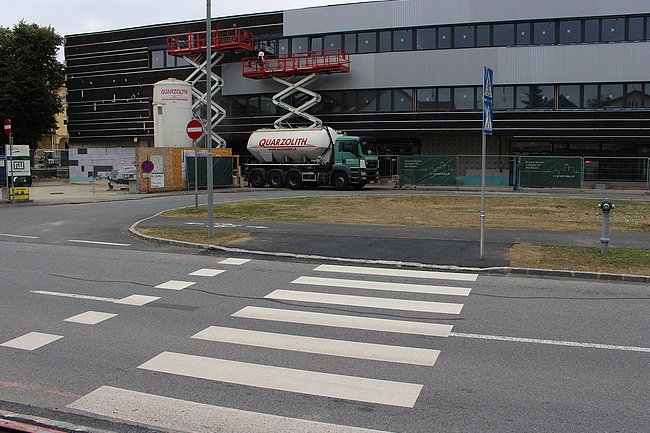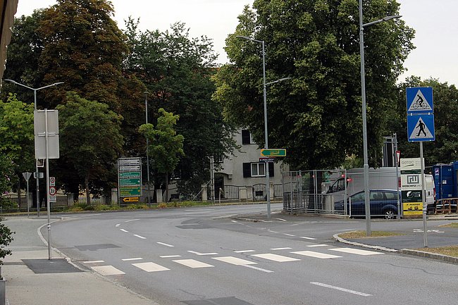 Vor der HTL wurde der Schutzweg für Fußgänger und Radfahrer aus dem Kurven-/Kreuzungsbereich zur Erhöhung der Sicherheit bei der Straßenüberquerung um 50 m vor den Haupteingang der HTL verlegt.