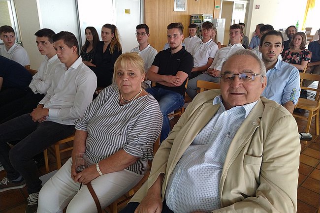 Das Treffen organisierte der gebürtige Burgenländer Dr. Josef Oswald, der in Baden-Württemberg ein erfolgreiches Unternehmen in der Reinraumtechnik führt. Die Jubilare feierten ihr Treffen mit ihren damaligen Lehrern sowie jetzigen Schüler*innen der Gebäudetechnikabteilung. Begleitet wurden sie durch diesen Tag von Gebäudetechnik-Abteilungsvorstand Adalbert Schönbacher, auch Dir. Wilfried Lercher nahm sich beim Festakt für einen Rück- und Ausblick gerne Zeit.