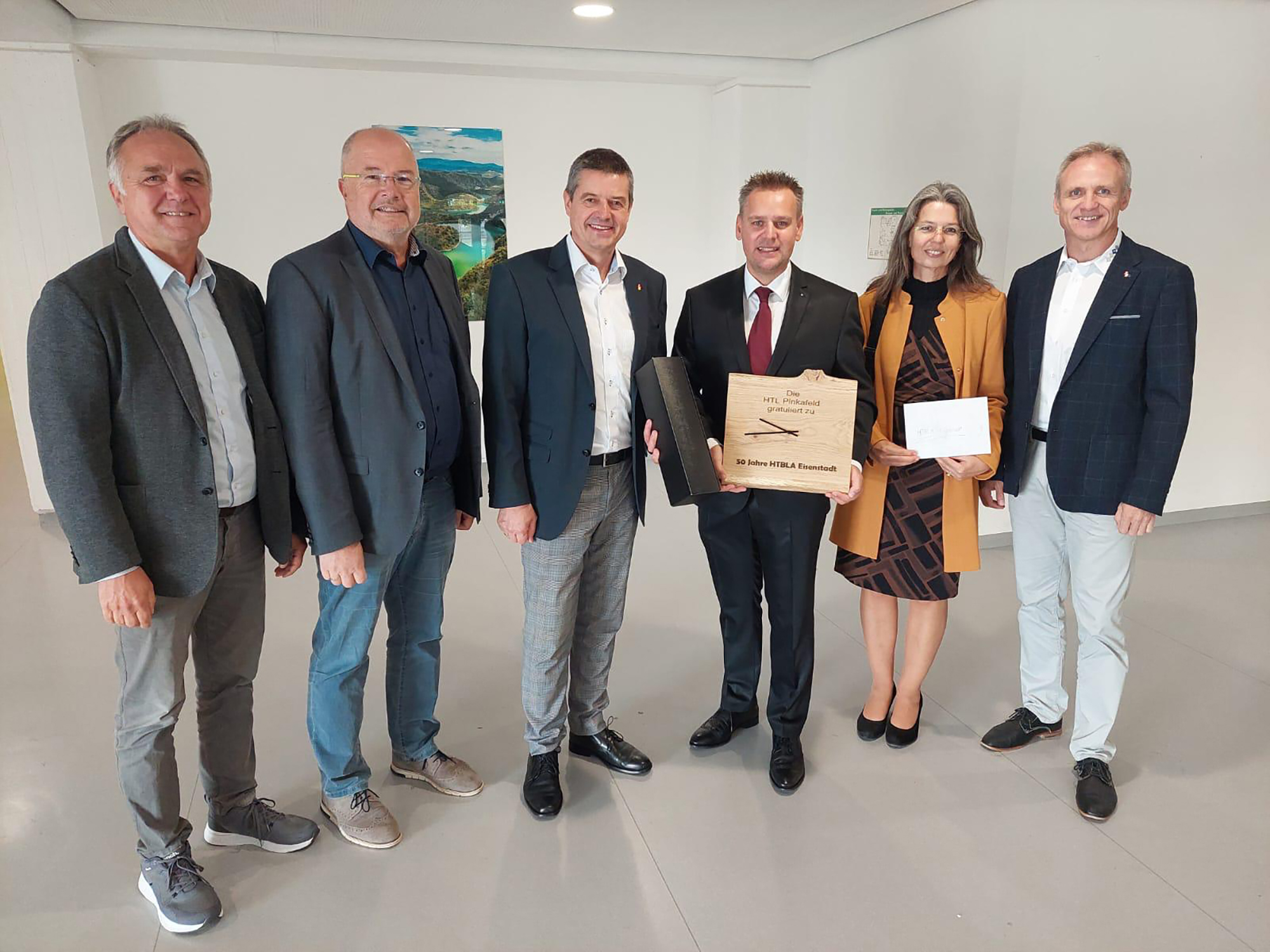 Anlässlich der 50 Jahre-Feier der HTL Eisenstadt am 28. September gratulierte die Schulleitung der HTL Pinkafeld dem neuen Direktor Thomas Schober und seinem Team sehr herzlich. Dir. Wilfried Lercher und die vier Abteilungsvorstände Ulrike Hartler, Karlheinz Oswald, Thomas Gabriel und Adalbert Schönbacher bedankten sich bei dieser Gelegenheit vor allem für die langjährige gute Zusammenarbeit.