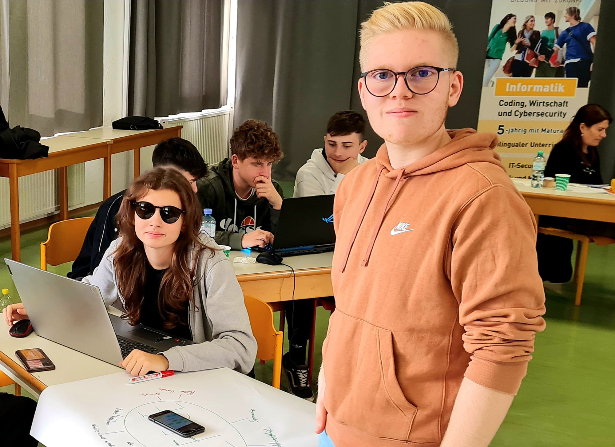 Mitte Oktober fand die erste Entrepreneurship-Week an der HTL Pinkafeld mit der dritten Informatik-Klasse 3BHIF statt. Zwei externe Trainer, Martin Rudolf von der WU Wien, Entrepreneurship Avenue, und Vivian Schulter, Personalentwicklerin und Start-up-Unterstützerin, weckten den Unternehmergeist bei den Schülerinnen und Schülern und begleiteten sie beim Finden von Geschäftsideen, deren Weiterentwicklung bis zur Validierung und Präsentation der Ideen.