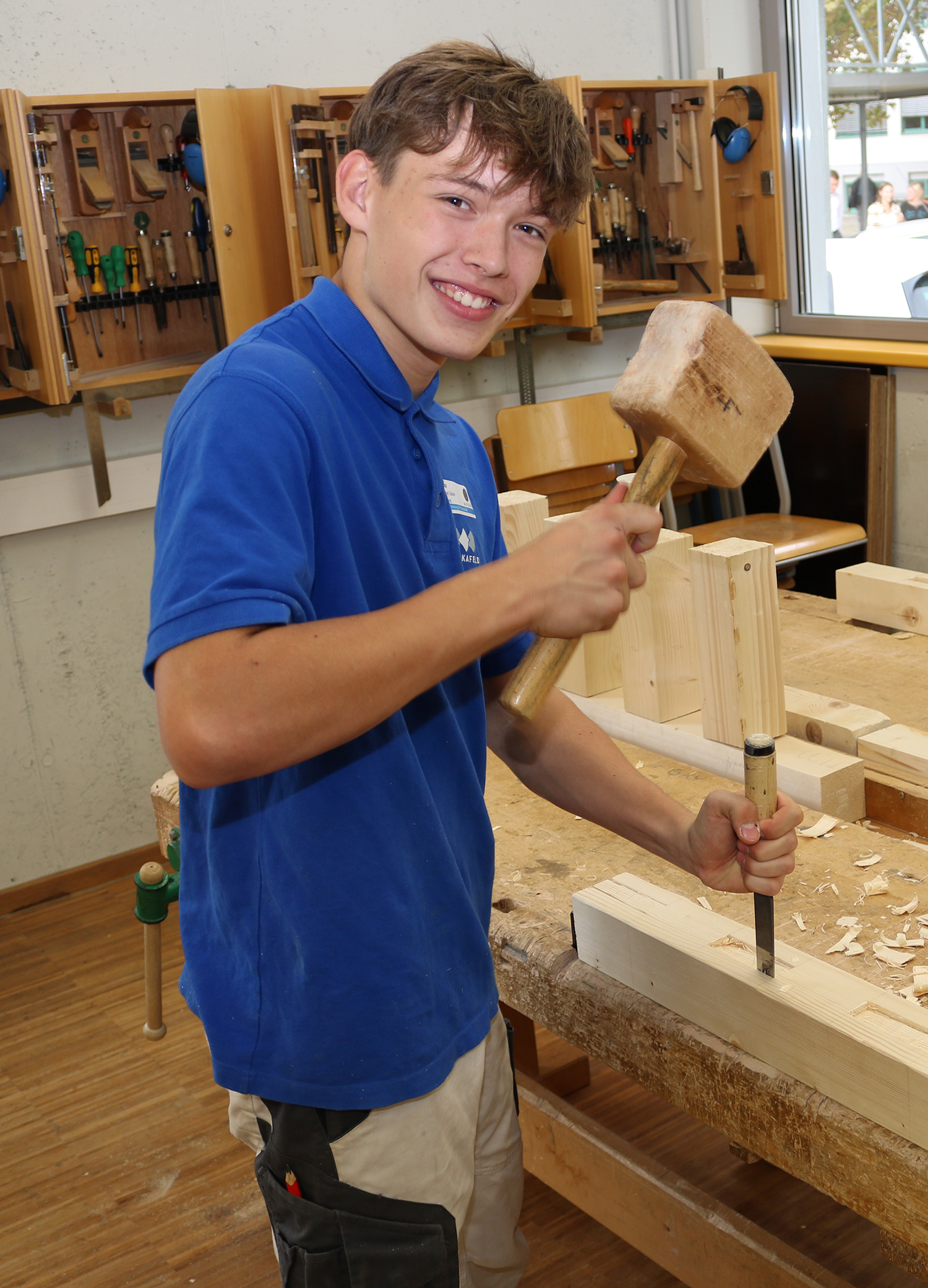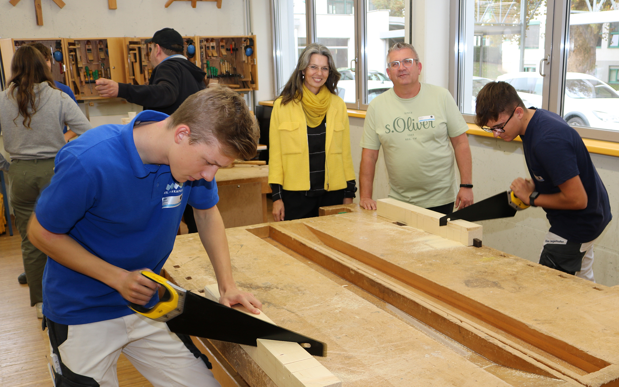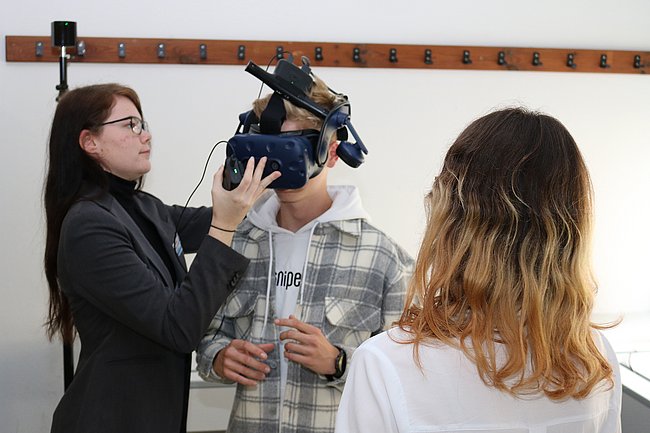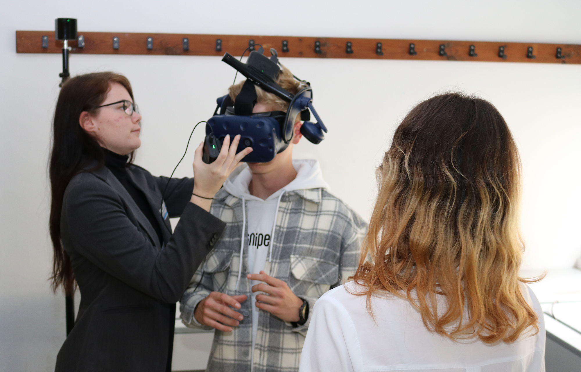 So wurden die verschiedenen Aspekte des Unterrichts anhand der Gegenstände und von Diplomarbeiten erläutert. Im Baulabor wurden Holz- und Betonversuche durchgeführt, die Zukunft des virtuellen Bauens wurde mittels VR-Brille sowie 3D-Scannen und -Drucken demonstriert und die Wärmebildkamera zeigte am Modellhaus sehr anschaulich potentielle Schwachstellen. Wesentliche Teile des fachpraktischen Unterrichts in der Zimmerei und Maurerei konnten am Ende des Rundgangs selbst ausprobiert werden.