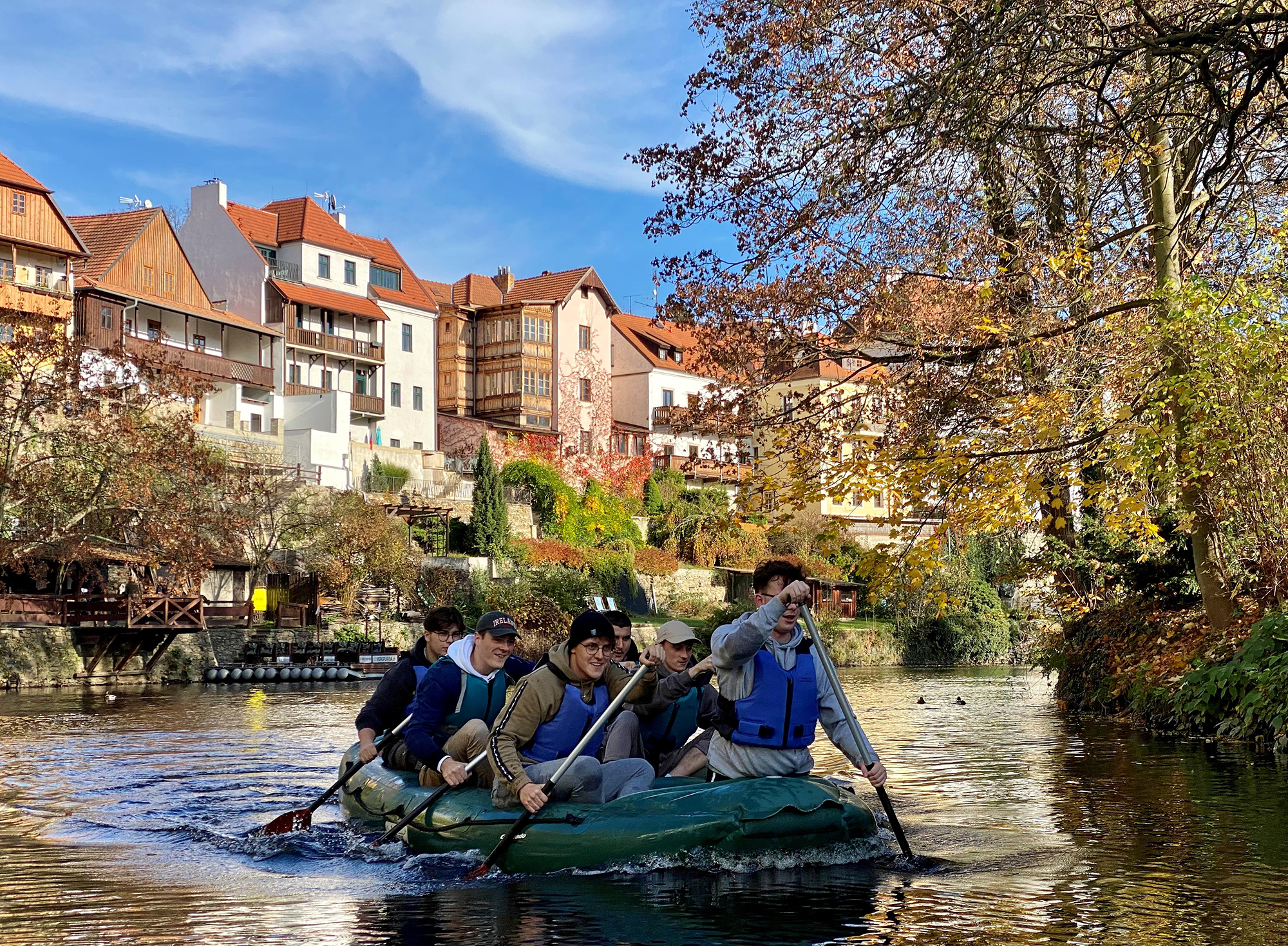 Neben faszinierenden Bauten aus Renaissance und Barock bot der Aufenthalt in Krumau vor allem Action mit einer Schlauchbootfahrt auf der Moldau bei strahlendem Sonnenschein. Begleitet wurde die Klasse von Prof. Frances Heilkenbrinker-Irmler und Klassenvorstand Prof. Christian Putz.