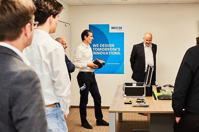 Mitte Oktober waren die 4. und 5. Elektronik-Jahrgänge der HTL Pinkafeld in Begleitung von Abteilungsvorstand Karlheinz Oswald und den Klassenvorständen beim Bildungspartner BECOM in Hochstraß zu Gast.