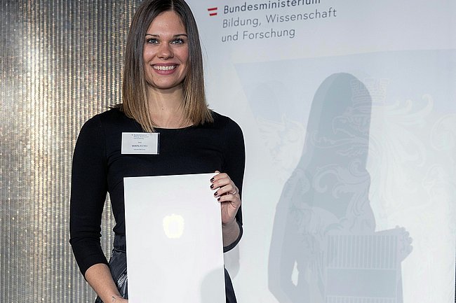 Mit dem seit 1990 vergebenen Würdigungspreis des Bildungsministeriums werden jährlich die 55 besten Diplom- und Masterabschlüsse an allen österreichischen Universitäten, Fachhochschulen und Pädagogischen Hochschulen – von insgesamt rund 16.000 Abschlüssen jährlich – ausgezeichnet. Voraussetzungen dafür sind die Ablegung der Masterprüfung mit Auszeichnung, eine hervorragende und bestbeurteilte Masterarbeit und die gesetzliche Studienzeit darf um nicht mehr als höchstens zwei Semester überschritten werden. Prof. Ines Wukits erhielt diesen Würdigungspreis am 22. November in der Aula der Wissenschaften in Wien.