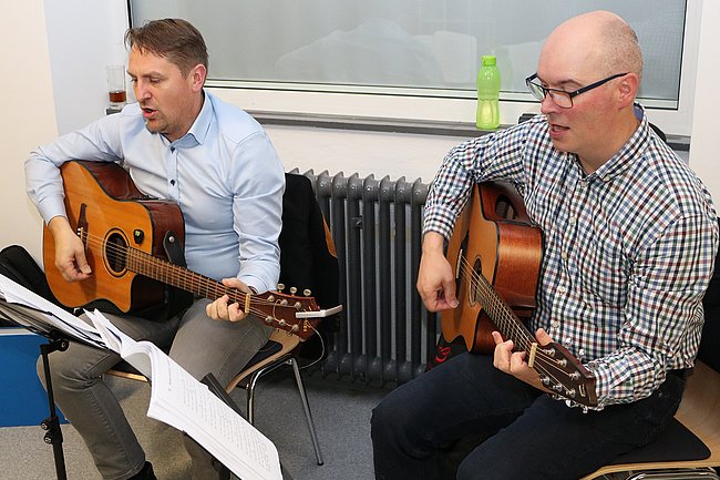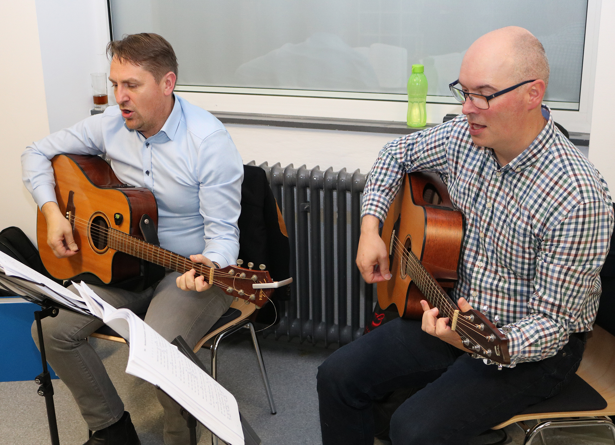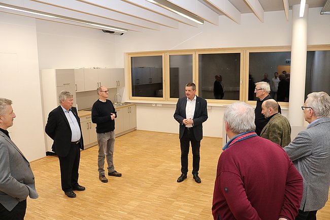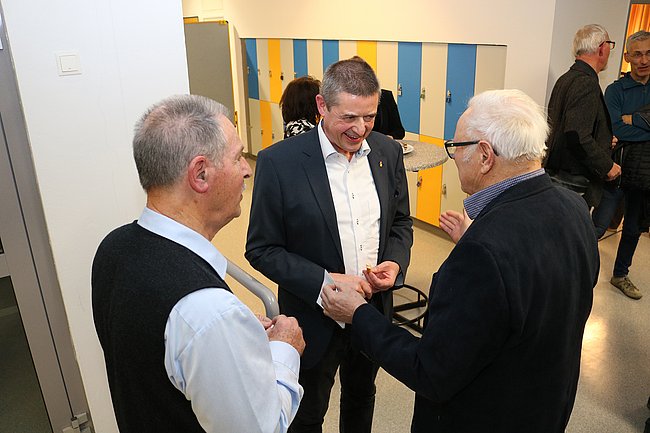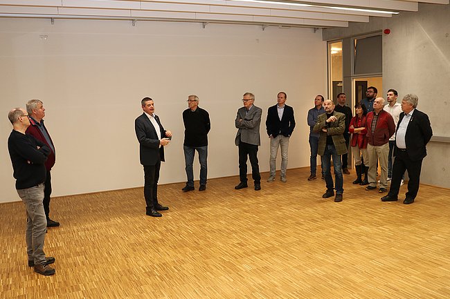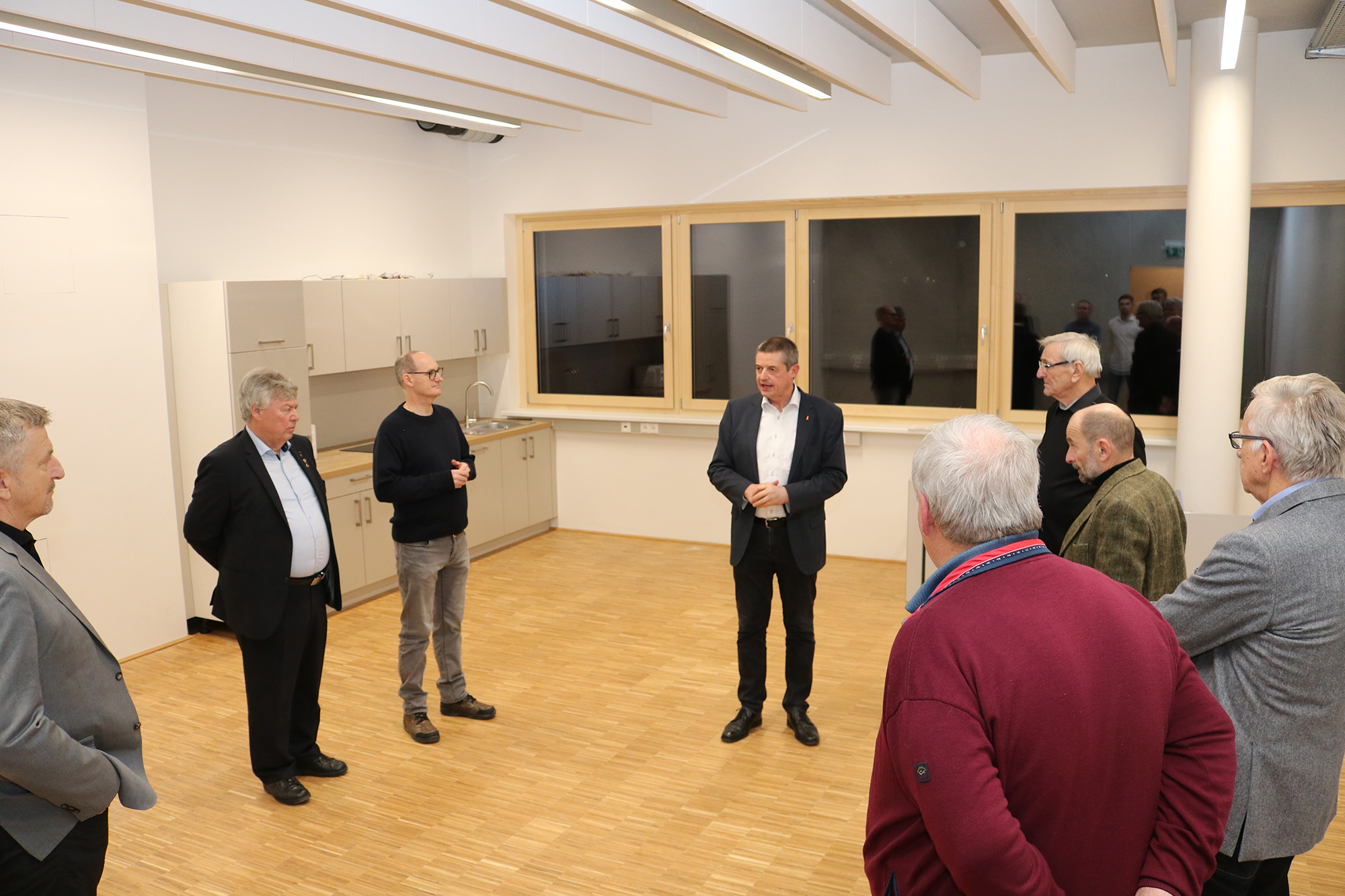 Der gemütliche Teil wurde ausgiebig zum „Informationsaustausch“ genutzt. Das Buffet-Team der Gästehäuser Burgenland hatte kulinarische Genüsse vorbereitet, Lehrer*innen sorgten mit Live-Musik für Stimmung. Zwischendurch gab Dir. Wilfried Lercher Interessierten einen kurzen Einblick in das aktuelle Baugeschehen.
