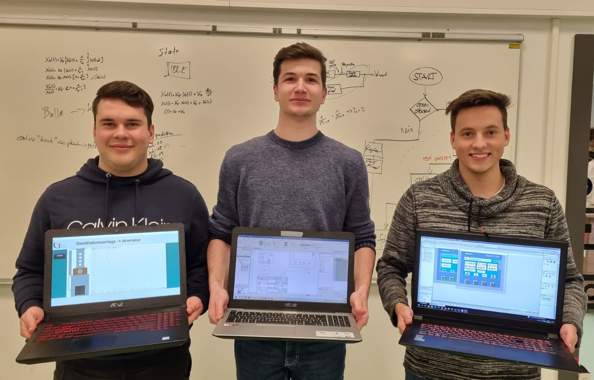 Die Elektronik-Maturanten der HTL Pinkafeld Matthias Röhrling, Christian Waldherr und Florian Stipsits visualisieren und automatisieren in ihrer Diplomarbeit „Destillationsanlage“ die Abläufe in einem Wasserbadbrennkessel.