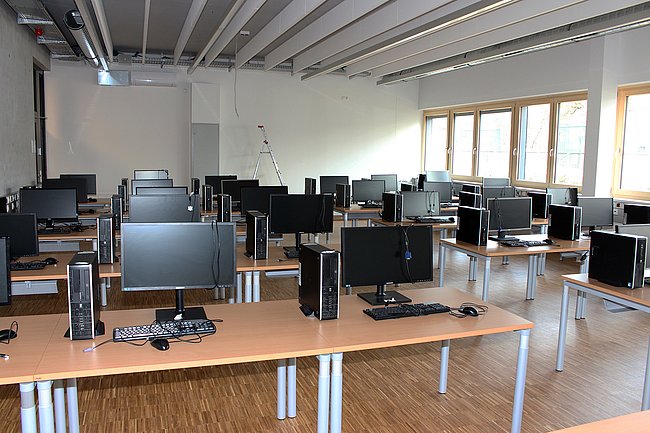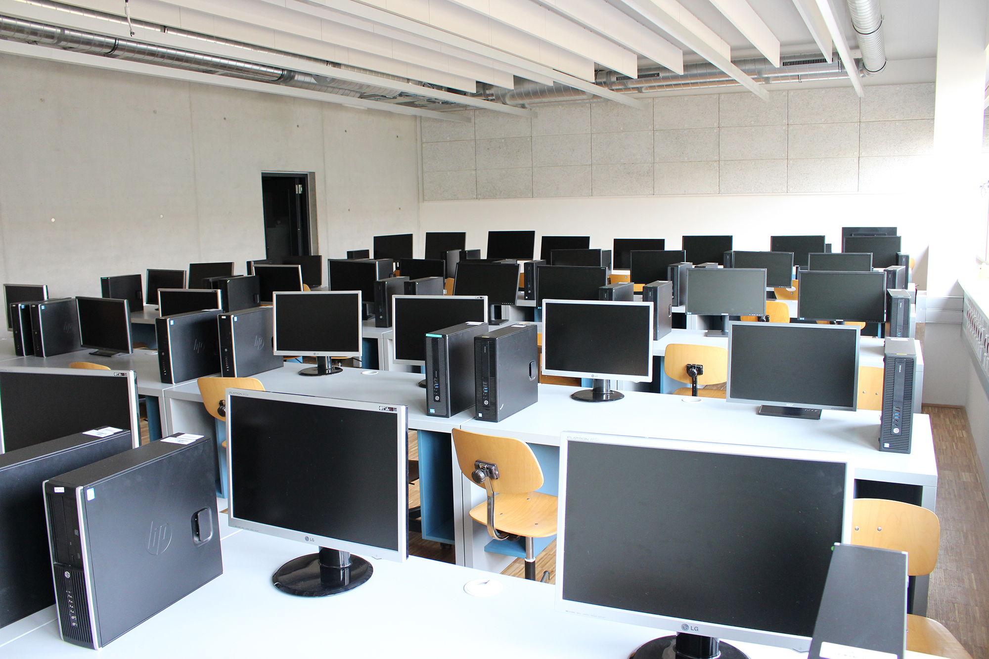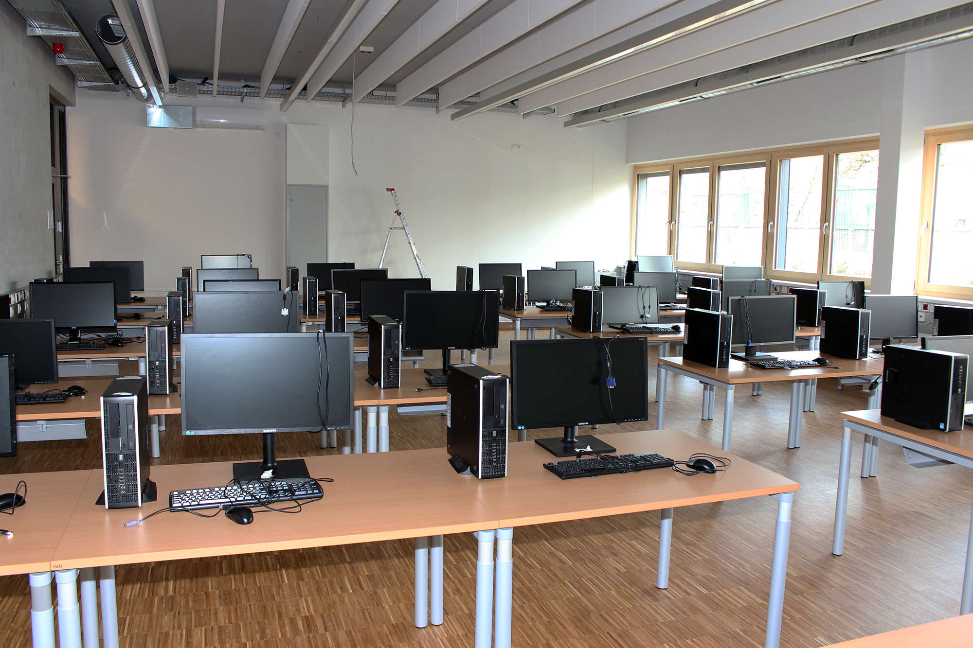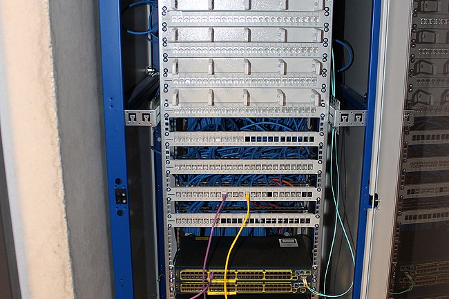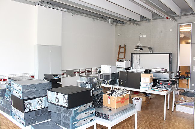 Eine besondere Herausforderung war die komplette Räumung von IT-Sälen und CAD-Sälen im Internatstrakt, die zwischenzeitlich wieder als Klassenräume fungieren, sowie die Übersiedlung der Bibliothek vom Internatstrakt in das Eingangsgebäude. Gleichzeitig wurden zehn neue Sonderunterrichtsräume – IT-Säle, CAD-Säle, IT-Computerwerkstätten und das Informatik-Netzwerklabor – neu bezogen, was für das IT-Supportteam neben der WLAN-Erweiterung und der Vernetzung der Klassen-PCs besonders viel Planungs-, Konfigurations- und Verkabelungsaufwand bedeutete. Viele IT-Verbindungen wie beispielsweise der redundante Netzwerk-Backbone mit Etagenverteilern in allen Geschoßen des Eingangsgebäudes sind in zeitgemäßer Lichtwellenleiter-Technologie ausgeführt.