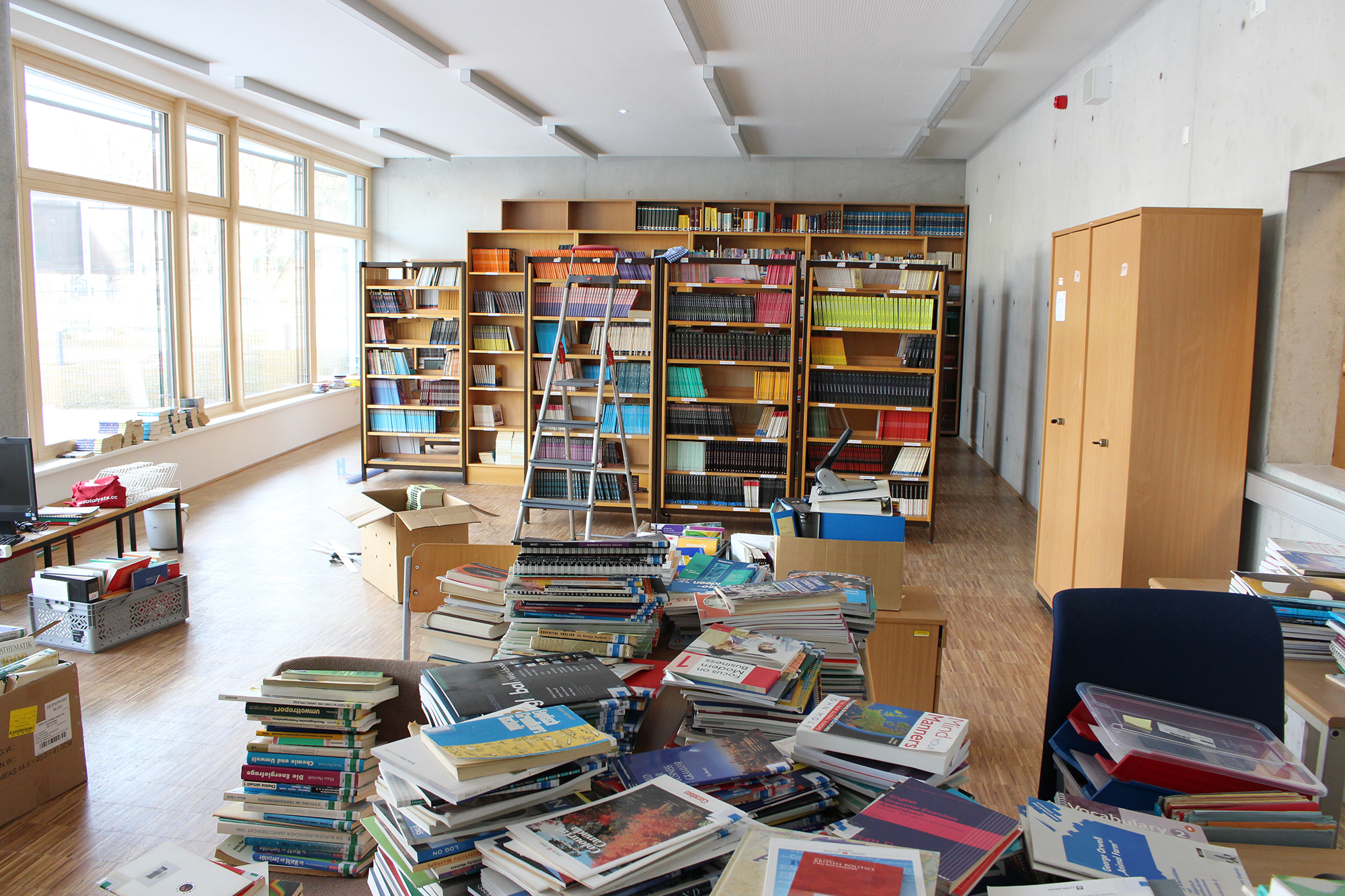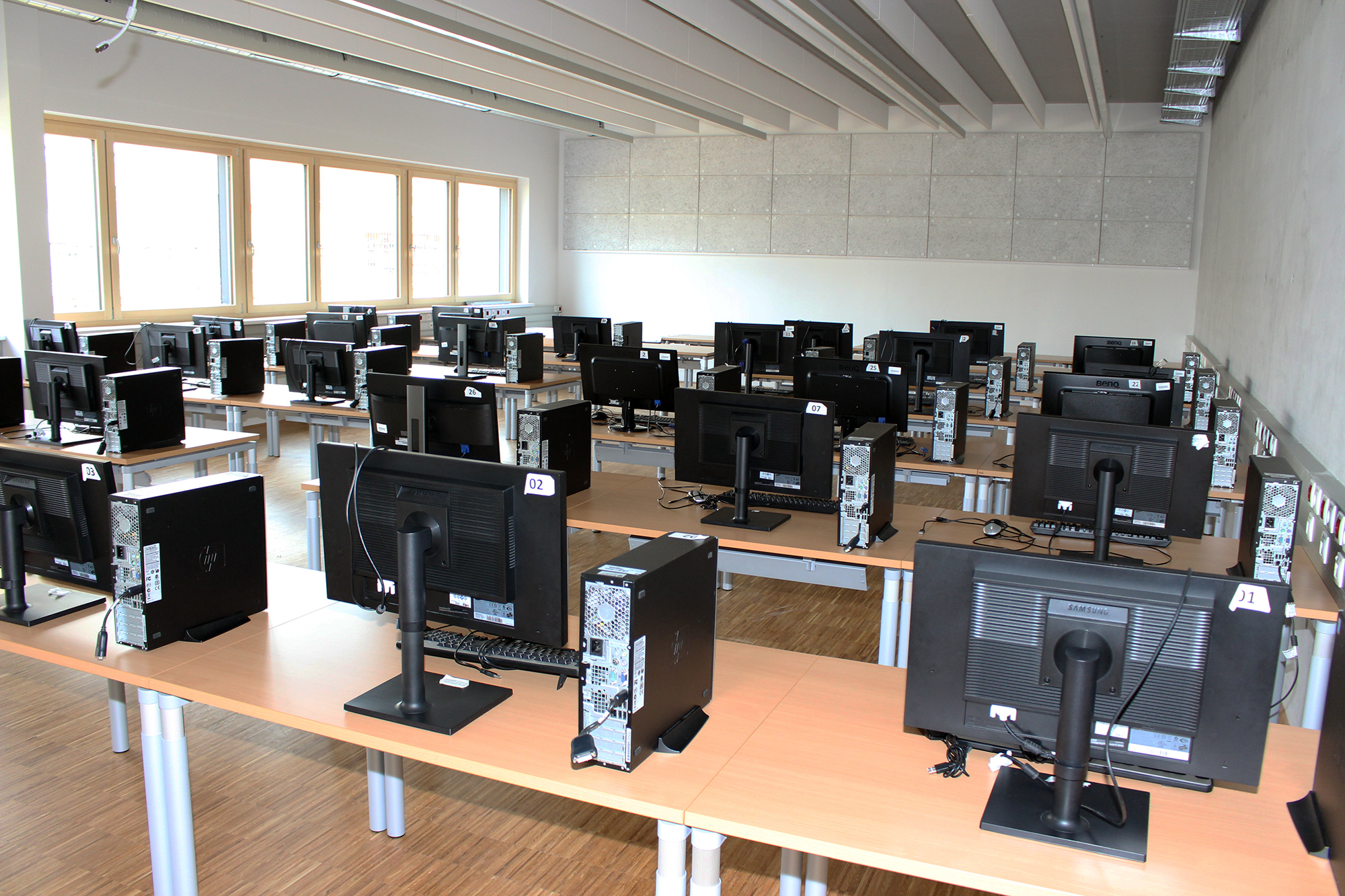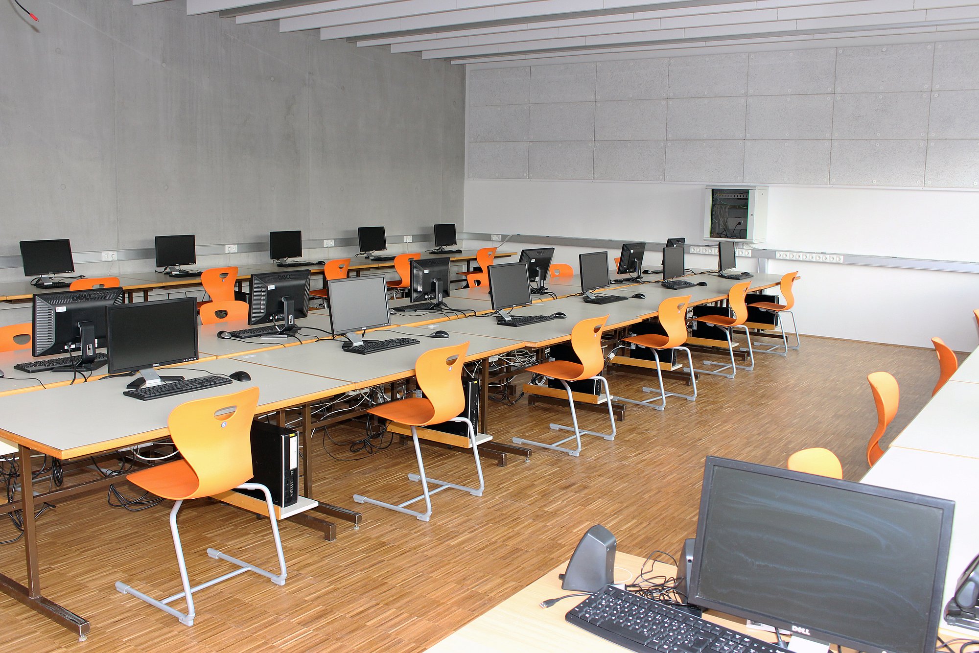 Eine besondere Herausforderung war die komplette Räumung von IT-Sälen und CAD-Sälen im Internatstrakt, die zwischenzeitlich wieder als Klassenräume fungieren, sowie die Übersiedlung der Bibliothek vom Internatstrakt in das Eingangsgebäude. Gleichzeitig wurden zehn neue Sonderunterrichtsräume – IT-Säle, CAD-Säle, IT-Computerwerkstätten und das Informatik-Netzwerklabor – neu bezogen, was für das IT-Supportteam neben der WLAN-Erweiterung und der Vernetzung der Klassen-PCs besonders viel Planungs-, Konfigurations- und Verkabelungsaufwand bedeutete. Viele IT-Verbindungen wie beispielsweise der redundante Netzwerk-Backbone mit Etagenverteilern in allen Geschoßen des Eingangsgebäudes sind in zeitgemäßer Lichtwellenleiter-Technologie ausgeführt.