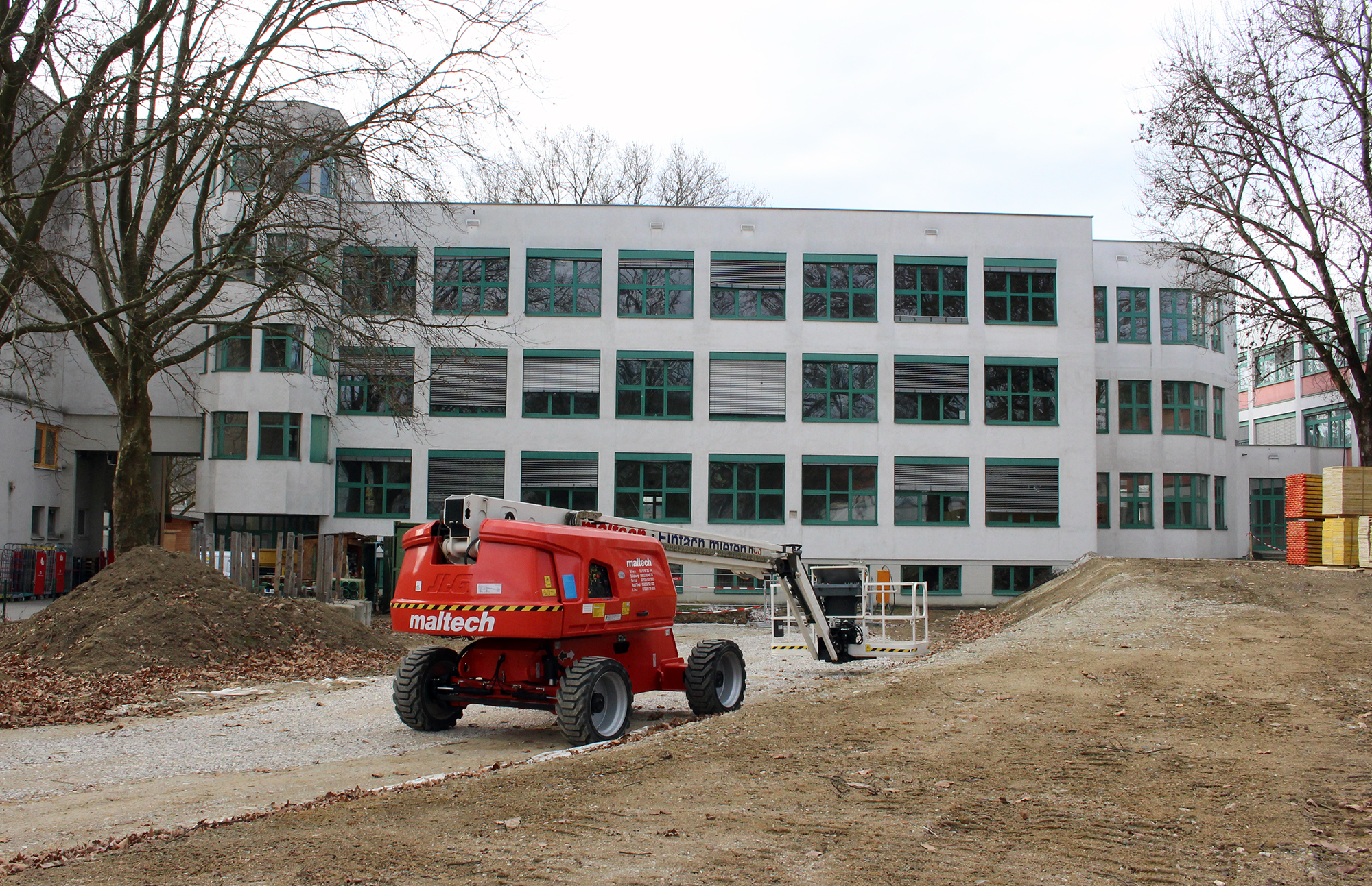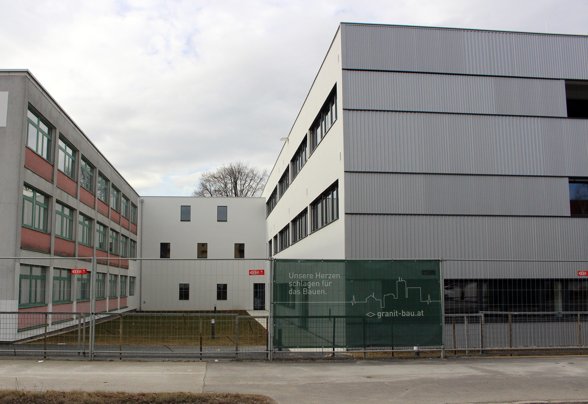 In der letzten Schulwoche vor den Semesterferien konnte nach 1½ Jahren Bauzeit das neue Eingangsgebäude der HTL Pinkafeld in den Schulbetrieb übernommen werden. Gleichzeitig wurde das Verbindungsgebäude zum Internat aus dem Schulbetrieb genommen, vollständig geräumt und als Baustellenbereich dem Totalunternehmer GRANIT bis Jahresende 2023 zur Generalsanierung – u.a. mit Neubau der Treppenbereiche an den Gebäudeenden– übergeben.