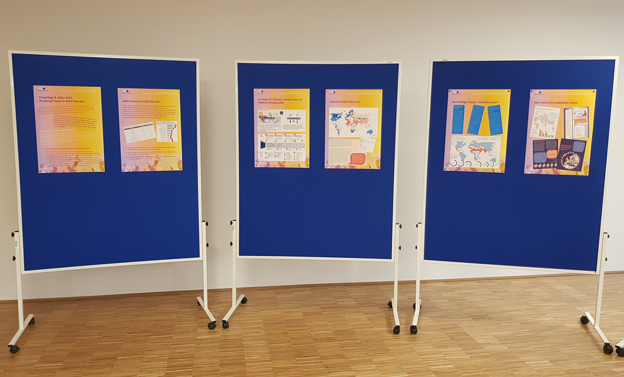 An der HTL Pinkafeld werden in Form einer von Mädchenteambetreuerin Prof. Birgit Stephan initiierten Ausstellung im neuen Eingangsfoyer und einer in Violett gehaltenen Beleuchtung anlässlich des Internationalen Frauentags „IWD 2023“ auf die Unterschiede zwischen Frauen und Männer aufmerksam gemacht.