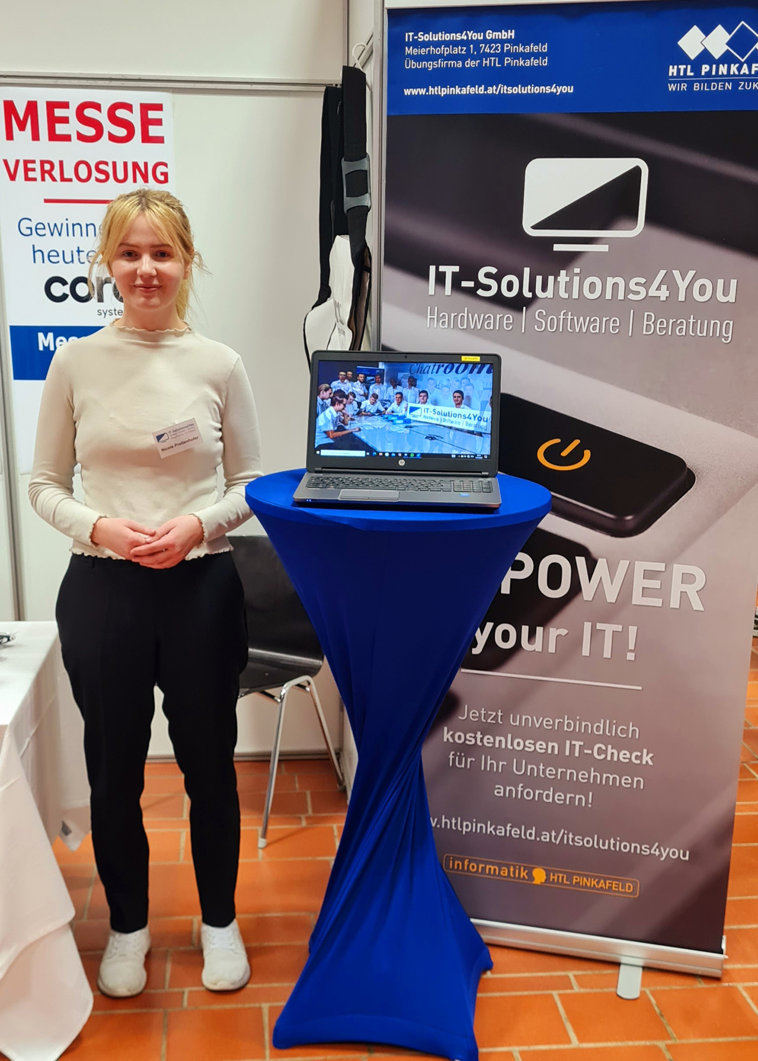 Am 14.3.2023 fand in der HAK/HAS Stegersbach die 5. Burgenländische Übungsfirmenmesse statt. So wie 24 andere ÜFAs aus dem ganzen Burgenland folgte auch die Übungsfirma der HTL Pinkafeld „IT-Solutions4You GmbH“ mit ihren Geschäftsführern Prof. Silke Zapfel und Prof. Heinz Bundschuh der Einladung und versuchte mit einem professionellen Messeauftritt zahlreiche Verkäufe abzuschließen und die Bekanntheit am Übungsfirmenmarkt zu steigern.