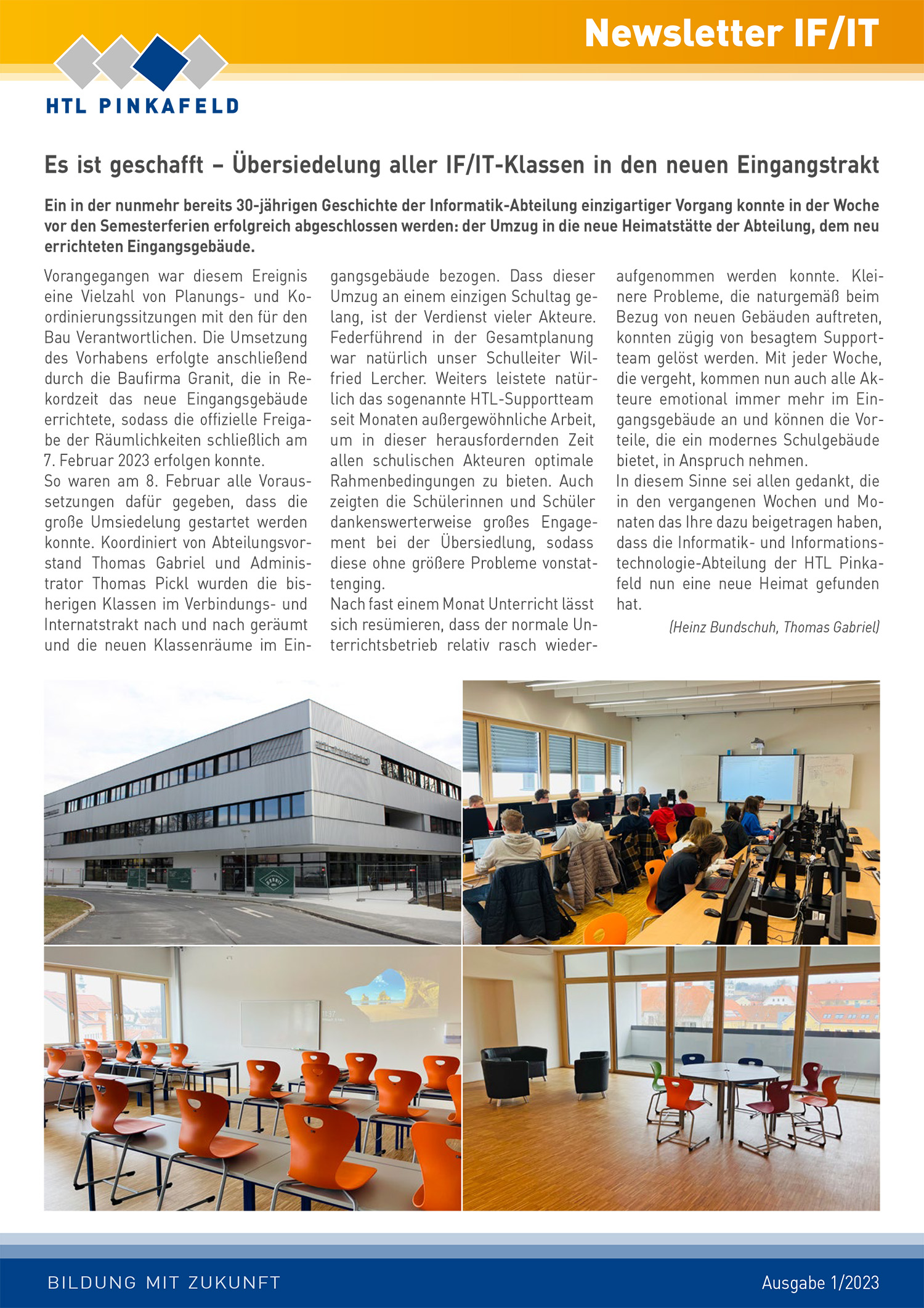 Kürzlich konnte Abteilungsvorstand Thomas Gabriel die Ausgabe 1/2023 präsentieren, diese kann digital auch von https://www.htlpinkafeld.at/informatik/newsletter/ heruntergeladen werden.