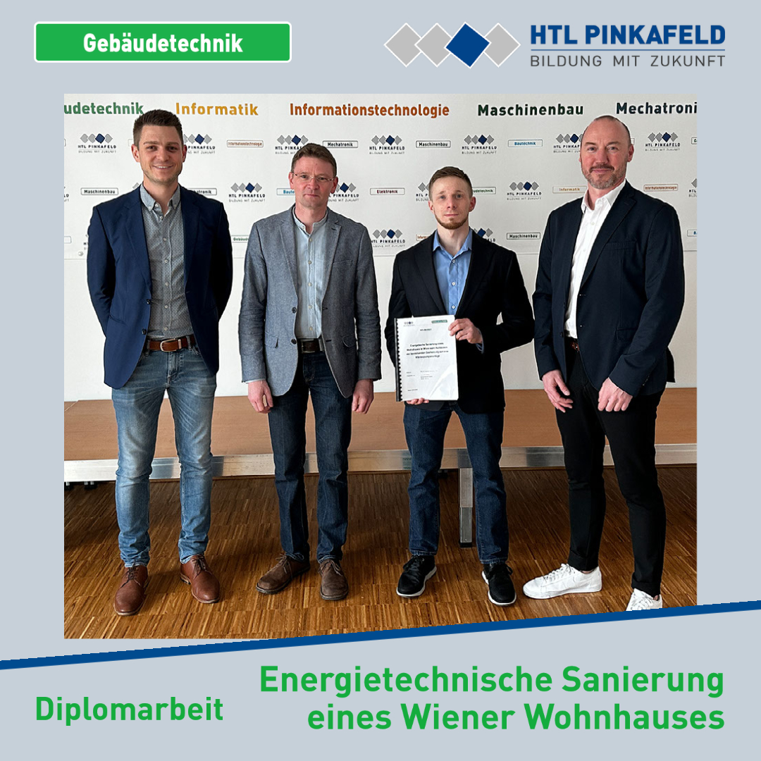 Die Diplomanden des Gebäudetechnik-Kollegs Alexander Weber, Daniel Neusiedl-Bauer und Robert Robinig beschäftigten sich in ihrer Diplomarbeit „Energietechnische Sanierung eines bestehenden Wohnhauses in Wien“ mit einem 200 Jahre alten Wiener Mehrparteienhaus. Betreut wurde die Arbeit von Prof. Thomas Kremnitzer.