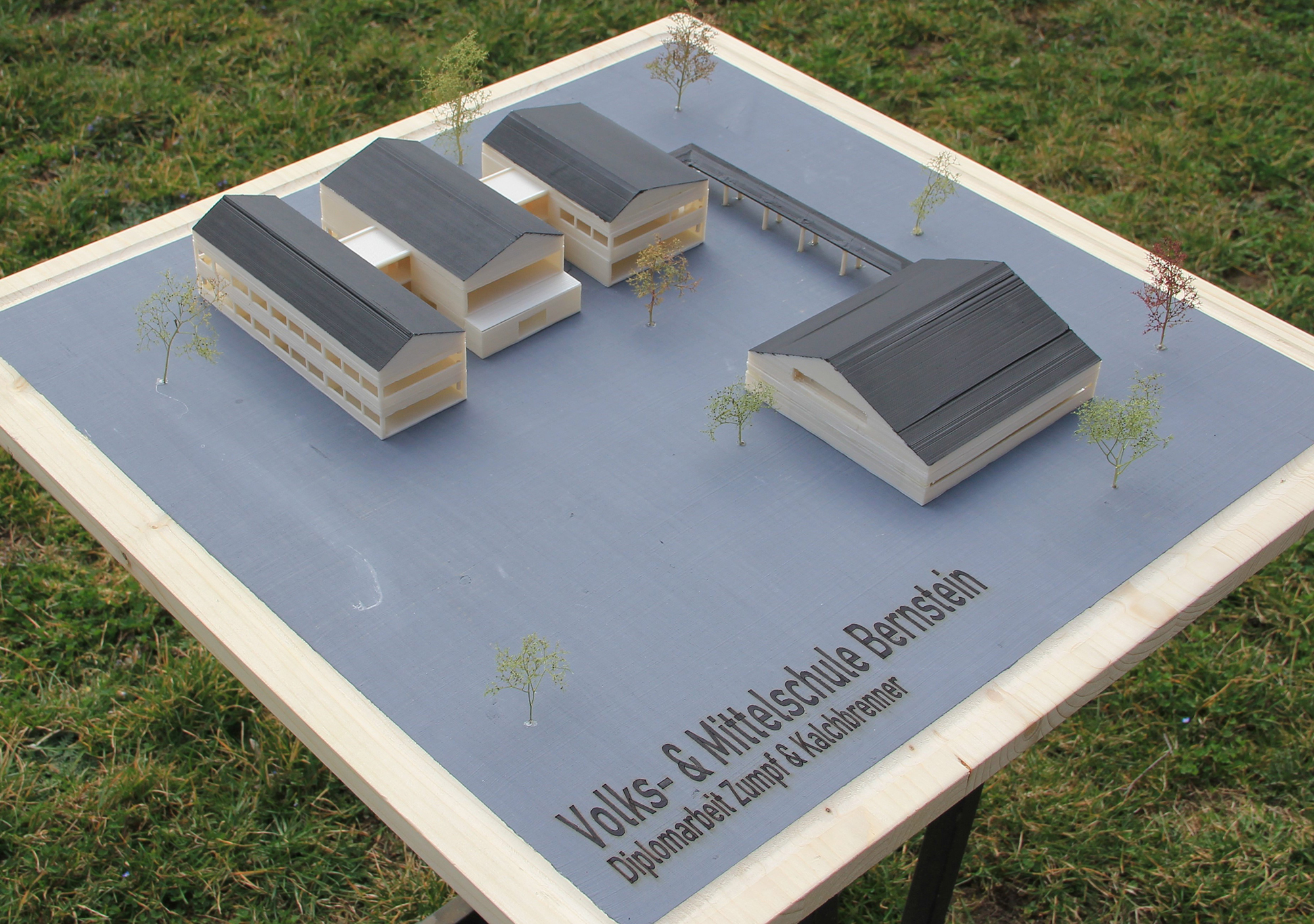 Ziel der Arbeit war es, ein neues Schulgebäude mit einer Volksschule und Mittelschule zu konzipieren. Um eine bessere Vorstellung des Neubaus zu gewährleisten, erstellten die Maturanten 3D-Visualsierungen und ein Modell mit dem 3D-Drucker.
