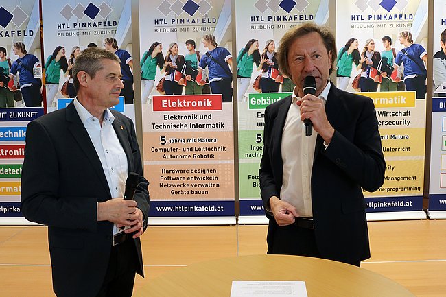 Zur Eröffnung der Karrieretage am Donnerstag, dem 20. April 2023 lud Direktor Wilfried Lercher Ehrengäste aus den Bereichen Bildung, Politik, Industrie und Wirtschaft. „Üblicherweise fahren Schüler zu den Unternehmen, bei den Karrieretagen kommen die Unternehmen zu uns“, freute er sich über das rege Interesse an der Veranstaltung. Bildungsdirektor Heinz Zitz dankte ihm für das große Engagement der HTL Pinkafeld und Vertreter aus Industrie und Wirtschaft für die Möglichkeit, ihre Unternehmen präsentieren zu dürfen.