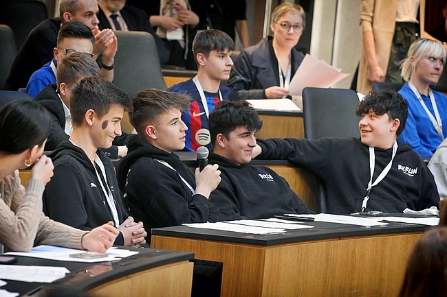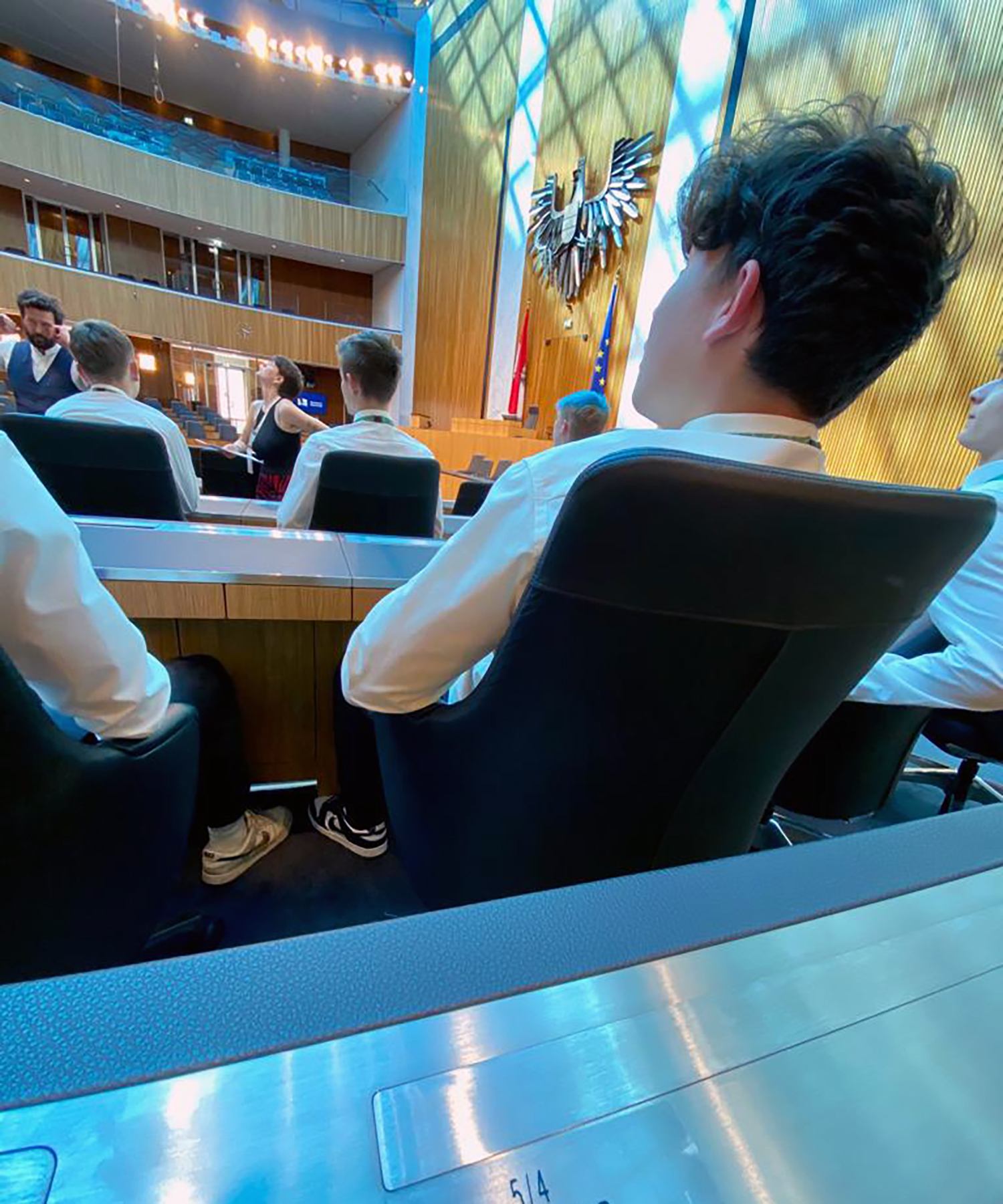 Die Aufgabe bestand darin, eine Gesetzesvorlage zum Thema „Schule und Digitalisierung“ in Parlamentsklubs zu erarbeiten. In den Ausschüssen ging es darum, sich mit den Vertreter:innen der anderen Klubs abzustimmen und bei den Pressekonferenzen gaben die Jung-Abgeordneten Interviews. Höhepunkt waren die Reden im großen Plenarsaal des Parlaments unter dem Vorsitz des Nationalratspräsidenten.