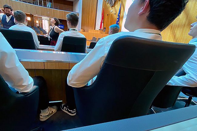 112 Jugendliche aus Wien und dem Burgenland, darunter auch die erste Gebäudetechnik-Klasse 1AHGT der HTL Pinkafeld, konnten das Hohe Haus zwei Tage lang aus einer ganz besonderen Perspektive kennenlernen: jener der Abgeordneten zum Nationalrat.