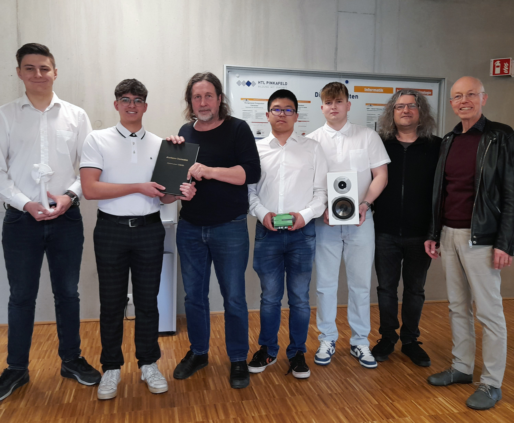 Mitte April wurde die Informatik-Diplomarbeit „Akustisches Theaterstück“ von den Maturanten Tim Gyaki, Danien Berger, Niklas Knarr und Robert Jin an die Auftraggeber Paul Mühlbauer, Rainer Paul und Michael Holzhacker sowie den Betreuer Prof. Klaus Kirnbauer übergeben.