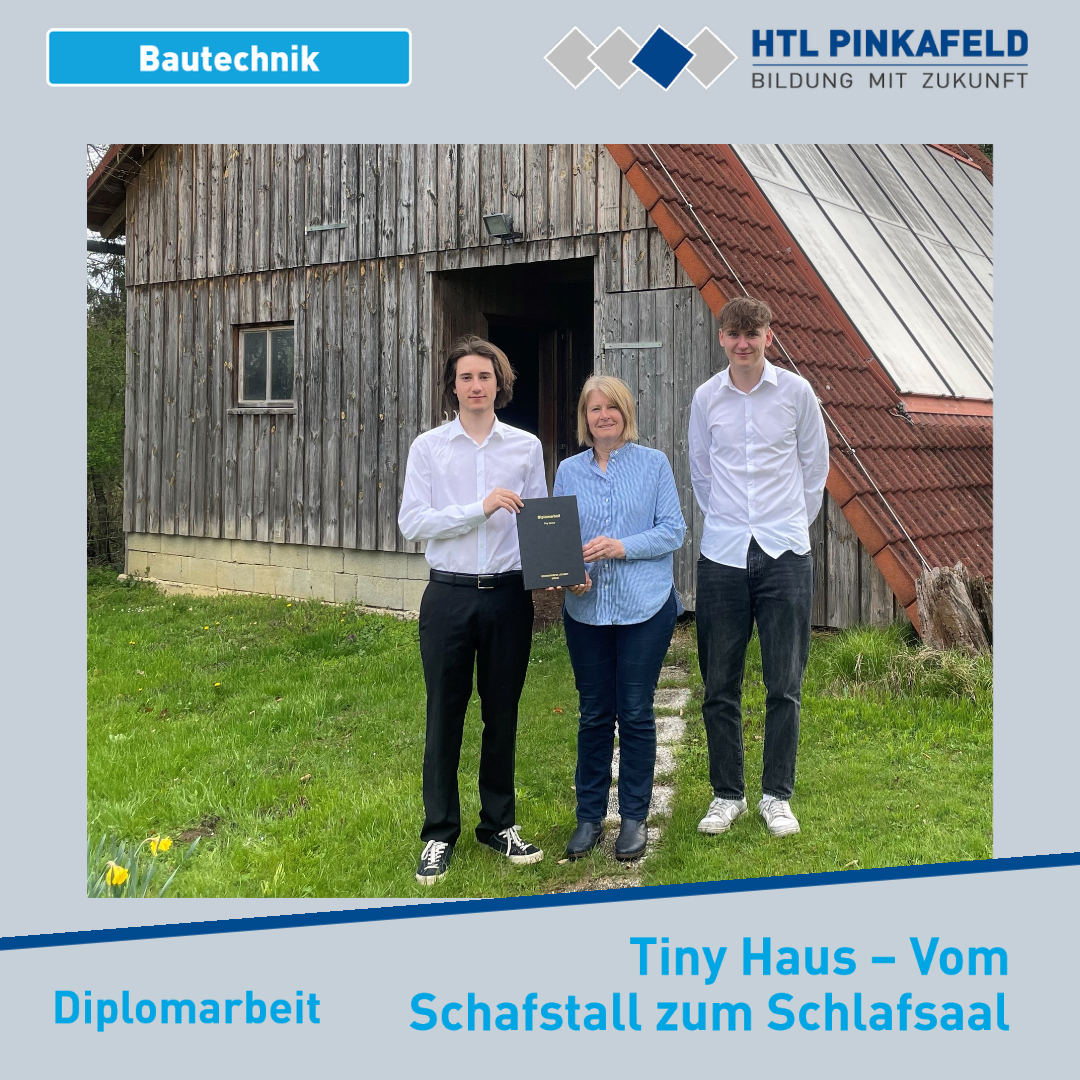 Ende April wurde die Diplomarbeit „Tiny Haus – Vom Schafstall zum Schlafsaal“ von den Bautechnik-Maturanten Leonard Schweighofer und Elias Stampf an die Auftraggeberin Brigitte Gruber übergeben.