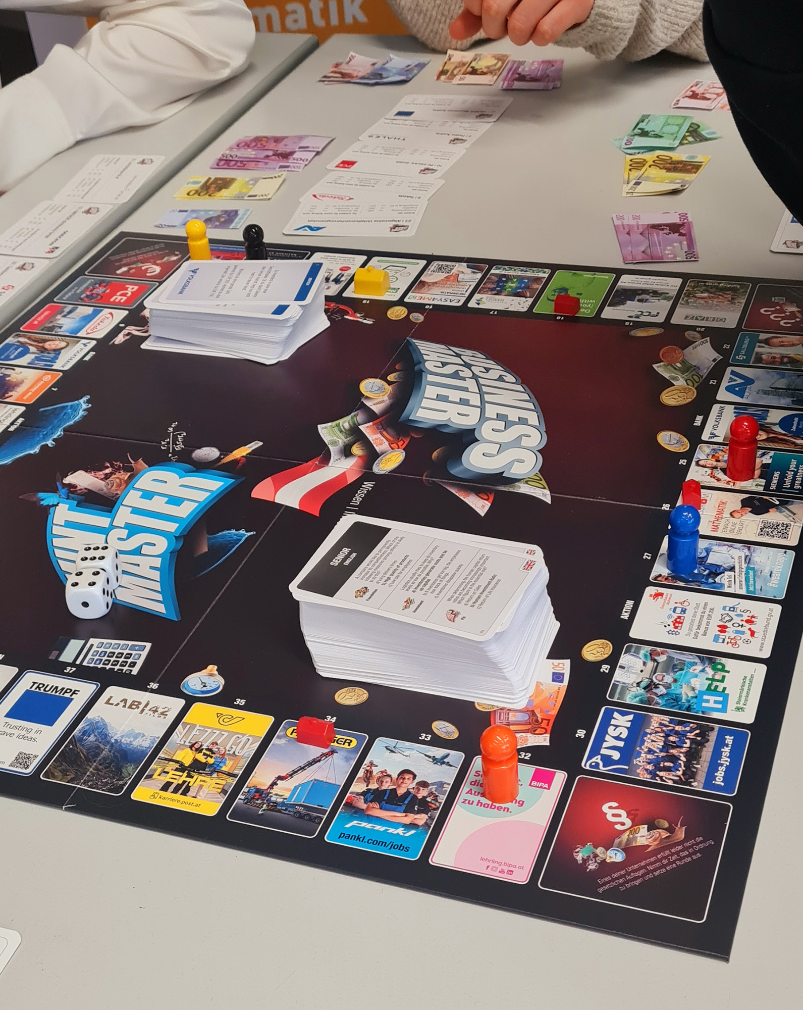 Die Schülerinnen und Schüler beherzigten den Tipp von Jakob Frey, dem Erfinder des Brettspiels BUSINESSMASTER, und spielten zügig, um möglichst viele Runden zu absolvieren, denn dadurch hatten sie die Chance auf möglichst zahlreiche Unternehmensgründungen. Ganz nebenbei haben sie ihr Wirtschaftswissen angewendet und spielerisch neues Wissen gesammelt, um ihre gegründeten Unternehmen weiterzuentwickeln.
