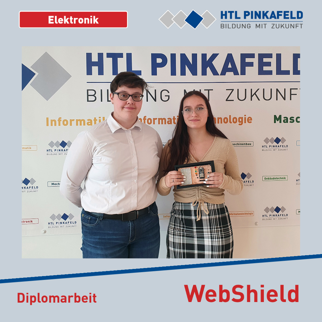 Kürzlich wurde die Diplomarbeit „WebShield“ von den Elektronik-Maturantinnen Victoria Lechner und Leonie Lind an den Auftraggeber Prof. Dietmar Scheiblhofer übergeben.