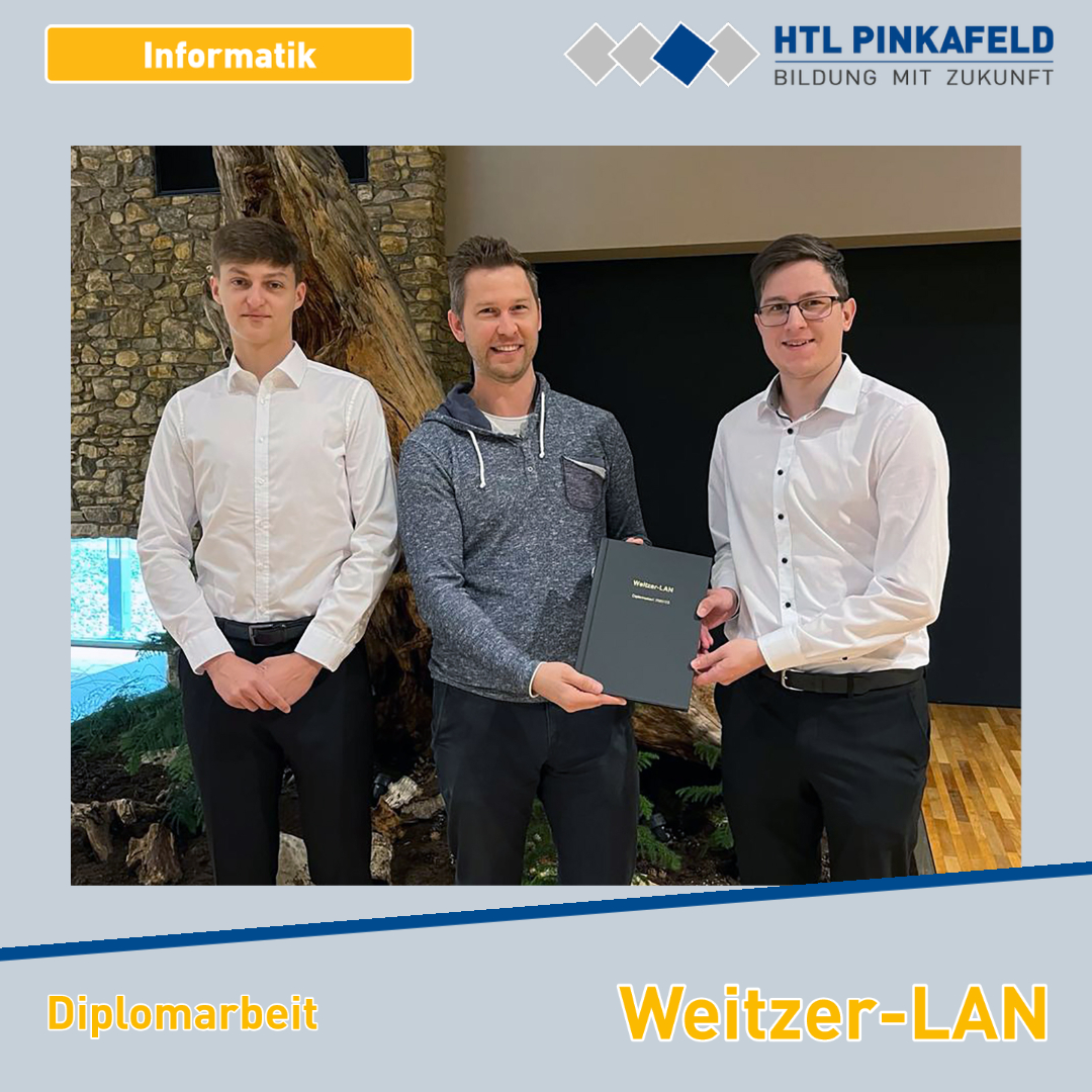 Mitte April wurde die Diplomarbeit „Weitzer-LAN“ von den Informatik-Maturanten Matthias Jeitler und Felix Penthor an den Auftraggeber Weitzer Parkett übergeben. Betreut wurde diese Diplomarbeit von Prof. Matthias Rodler und Prof. Ewald Hagenauer.