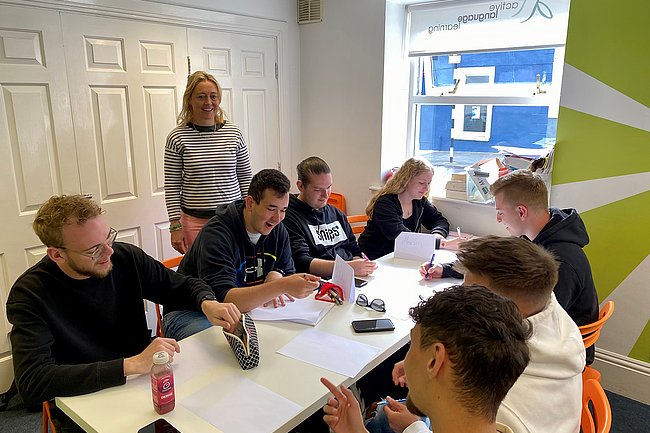 Vormittags stand Unterricht in der Sprachschule auf dem Programm; die Immersion-Erfahrung wurde durch den Aufenthalt in und die rege Kommunikation mit irischen Gastfamilien abgerundet.