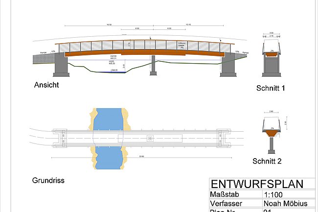 Kürzlich wurde die Diplomarbeit „Langlebigkeit im Holzbrückenbau durch Design und Wartung“ von den Bautechnik Maturanten Leonhard Dannemüller und Noah Möbius übergeben. Betreut wurde die Diplomarbeit von Prof. Wolfgang Leeb.
