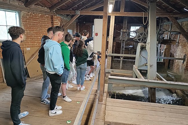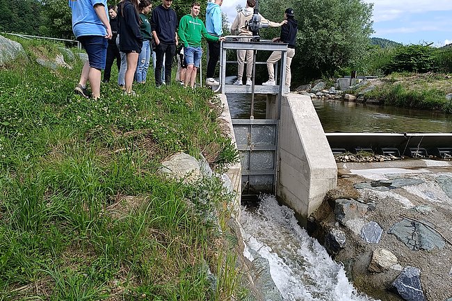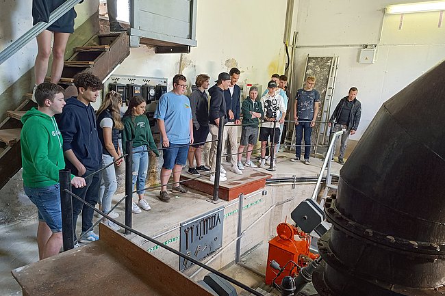 Die Schüler*innen erhielten von den Burgenland Energie-Mitarbeitern Matthias Lehner, Dimitri Müllner und Martin Bruschek detaillierte Insights in die Funktion des Werks und manch Anekdote sorgte für Erheiterung. So hatte beispielsweise ein Biber Einzug ins Wasserschloss gehalten und musste mit Unterstützung der Feuerwehr umgesiedelt werden, aber bereits am nächsten Tag war er wieder ins Wasserschloss zurückgewandert.