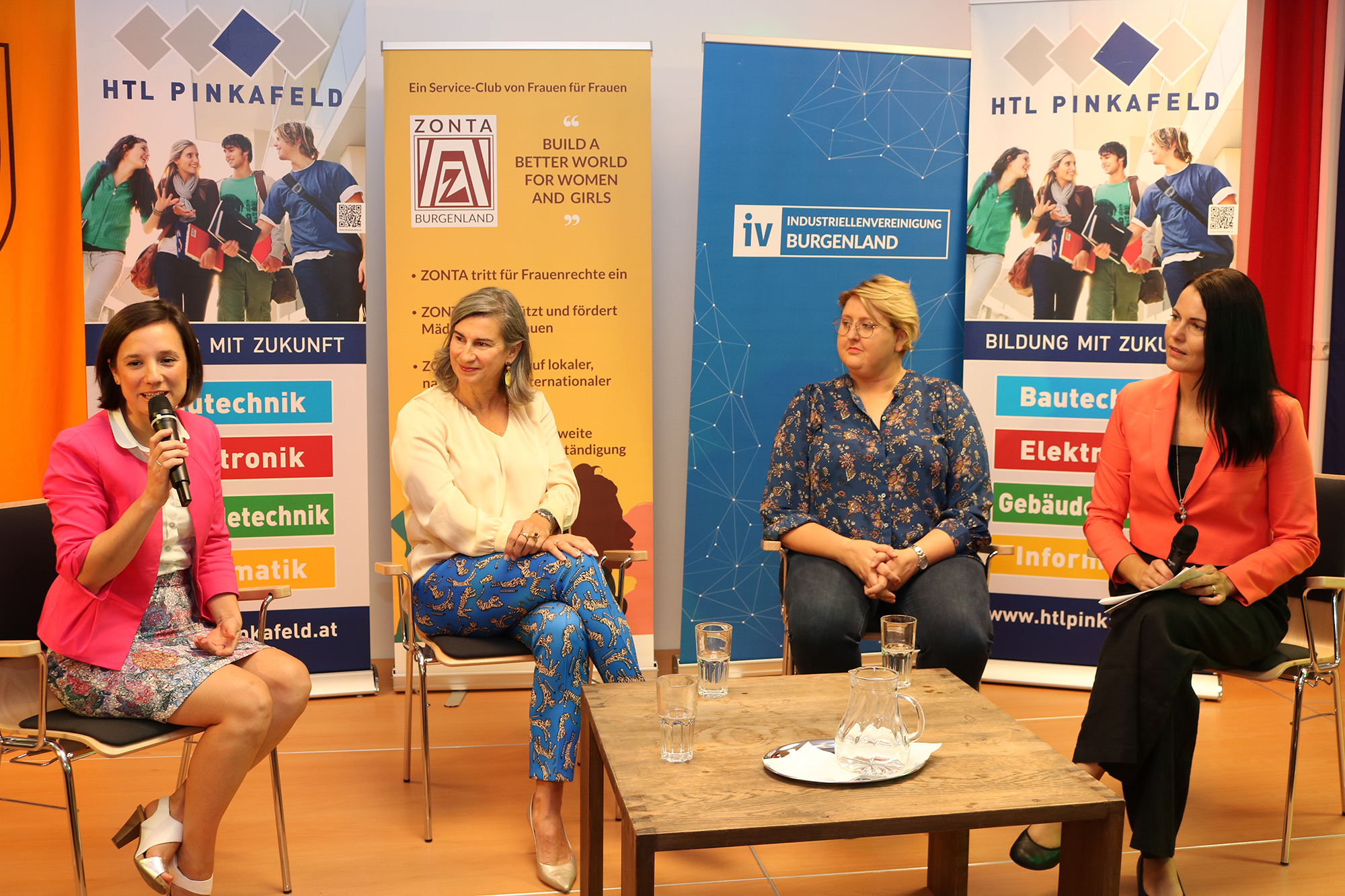Höhepunkt des Vernetzungs-Frühstücks war ein Round-Table-Gespräch, moderiert von Barbara Rehling, Professorin für Fachtheorie Gebäudetechnik. Dabei erzählten drei Frauen in Führungspositionen von ihren Karrierewegen, gaben Einblicke in ihren beruflichen Alltag und Tipps wie man sich als Frau in der nach wie vor von Männern dominierten Technikbranche durchsetzen kann. Aniko Benkö, Geschäftsführerin der IV Burgenland, Alexandra Winter, Geschäftsführerin von P&I Technisches Büro für Automatisierungstechnik GmbH und Caroline Biribauer, Geschäftsführerin von Biribauer Metallbau GmbH beantworteten dabei Fragen der Schülerinnen. Resümee: Junge Frauen sind gefragt als Technikerinnen und haben laut Benkö „sehr gute Karrierechancen“.