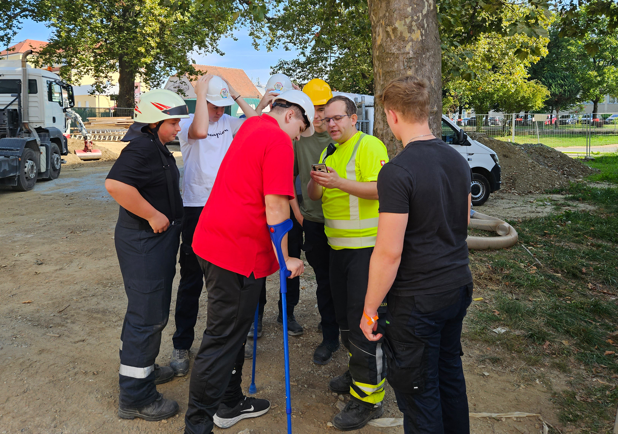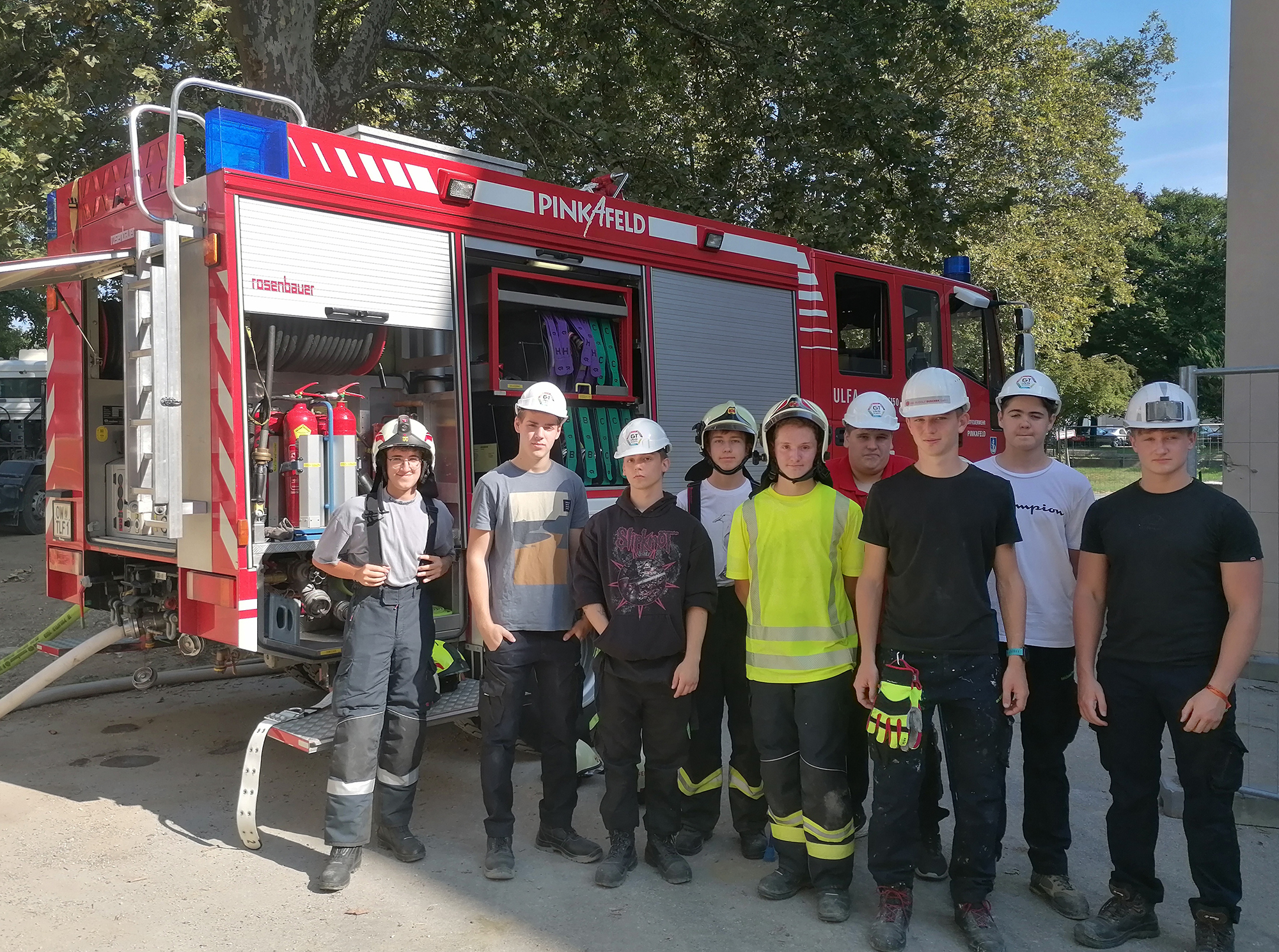 Mitte September unterstützten die Feuerwehrschüler*innen der dritten Gebäudetechnik-Klasse der HTL Pinkafeld und Prof. Michael Krutzler die Baufirma GRANIT bei den aktuell stattfindenden Sanierungsarbeiten des Verbindungstraktes.
