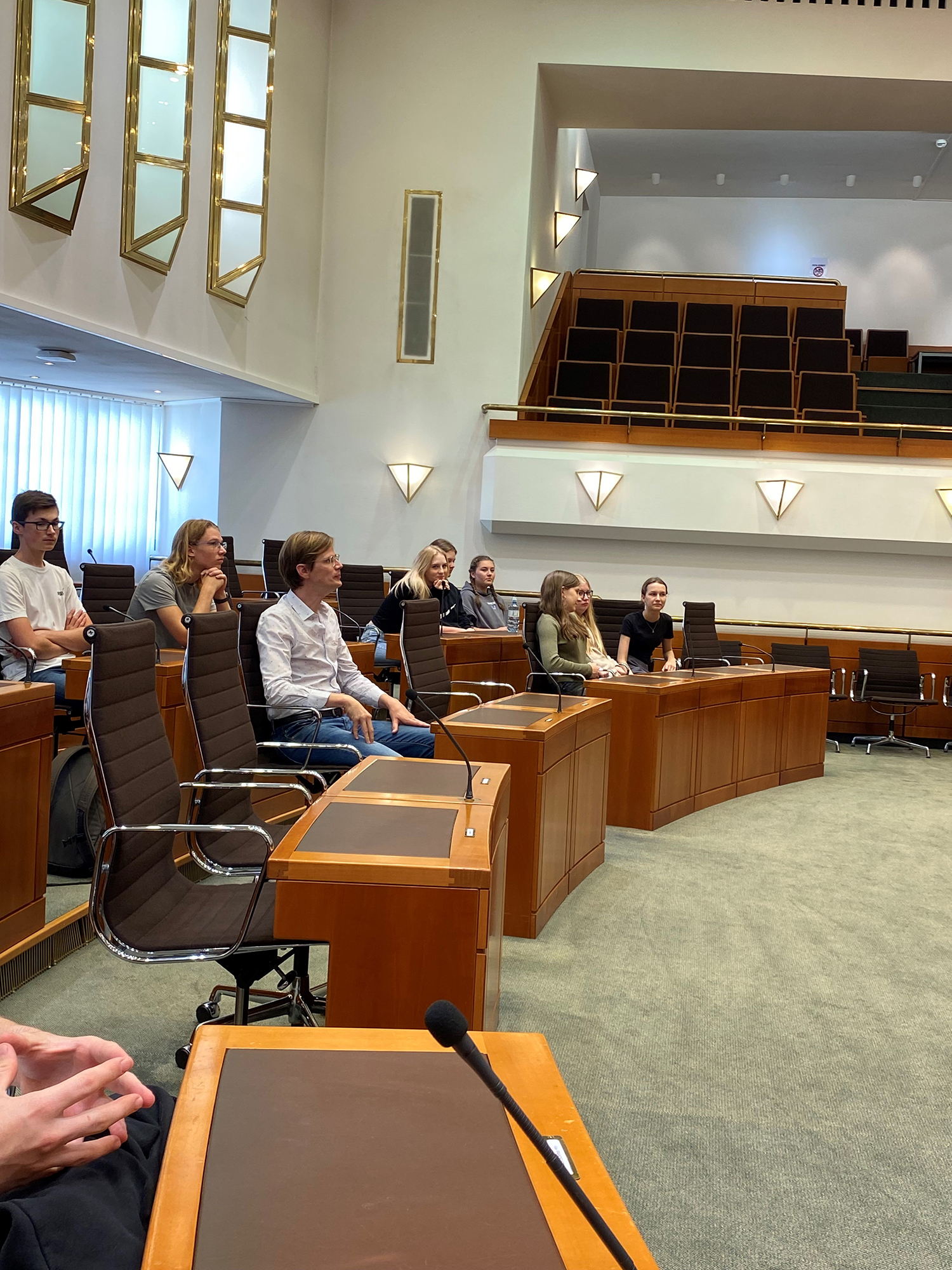 Ein spannendes, fächerübergreifendes Projekt wagten die Bautechnik-Schüler*innen der 2CHBT Ende September gemeinsam mit ihrer Klassenvorständin Prof. Sonja Szelinger und Prof. Benjamin Sasdi: In dessen Fokus stand auf der einen Seite der historische Zugang zum burgenländischen Landtag, dessen Architektur und politische Bedeutung. Johann Lotter, Alt-Bgm. des historisch bedeutsamen Ortes Schattendorf, nahm sich sehr viel Zeit und führte die Gruppe aus der HTL Pinkafeld mit viel Herzblut, sehr unterhaltsam und informativ durch die Landtagsräumlichkeiten.