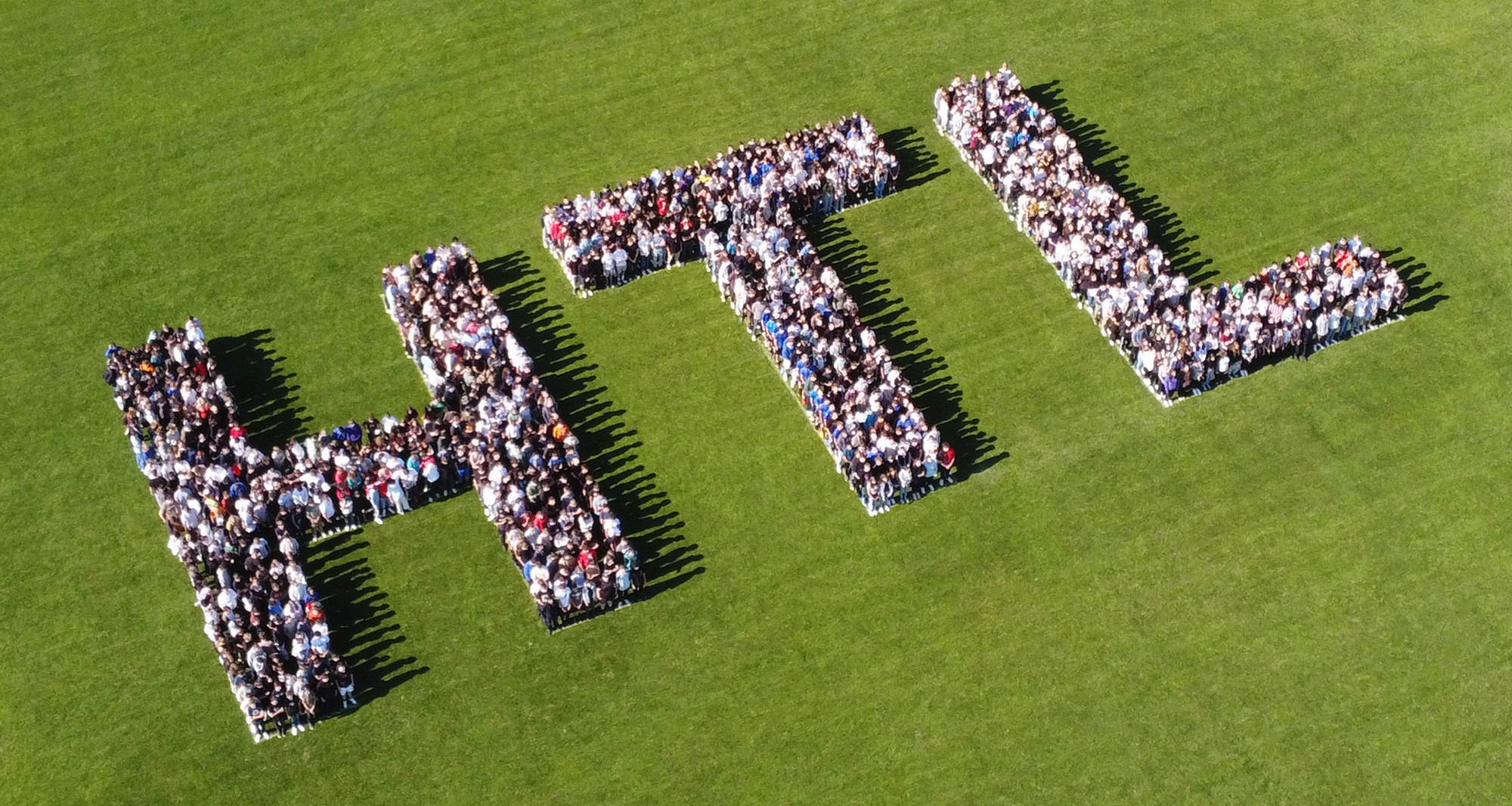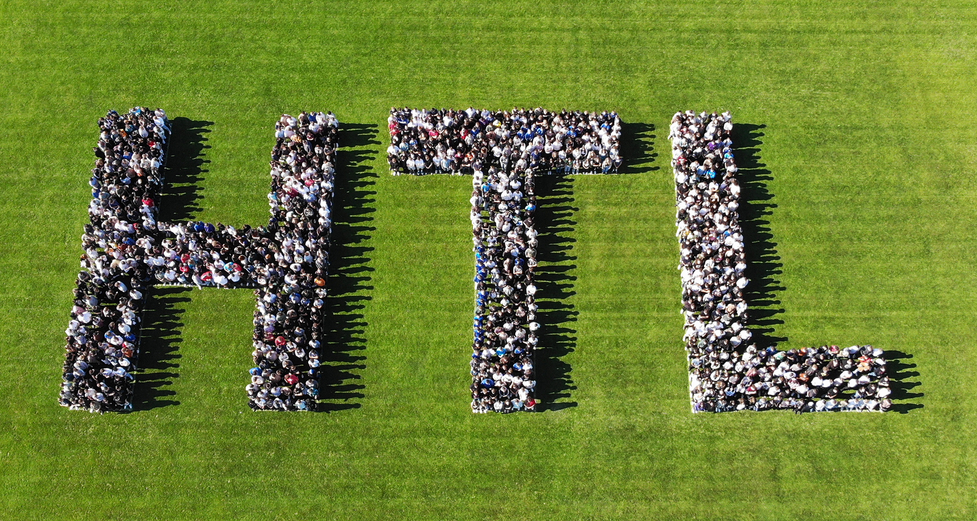 Dazu waren von Bauhofleiter Prof. Michael Petrakovits und dem HTL-Supportteam mit vermessungstechnischer Genauigkeit die drei Buchstaben „HTL“ in den Rasen des Fußballfeldes gezeichnet worden. Für die Erstellung der Luftaufnahmen waren die Drohnen der Gebäudetechnik-Abteilung im Einsatz. Werkstättenleiter Prof. Stefan Singraber und Prof. Lukas Tkauz nutzen u.a. die Möglichkeiten der Wärmebildkamera und schossen Fotos aus verschiedenen Flughöhen und Einstellungen.