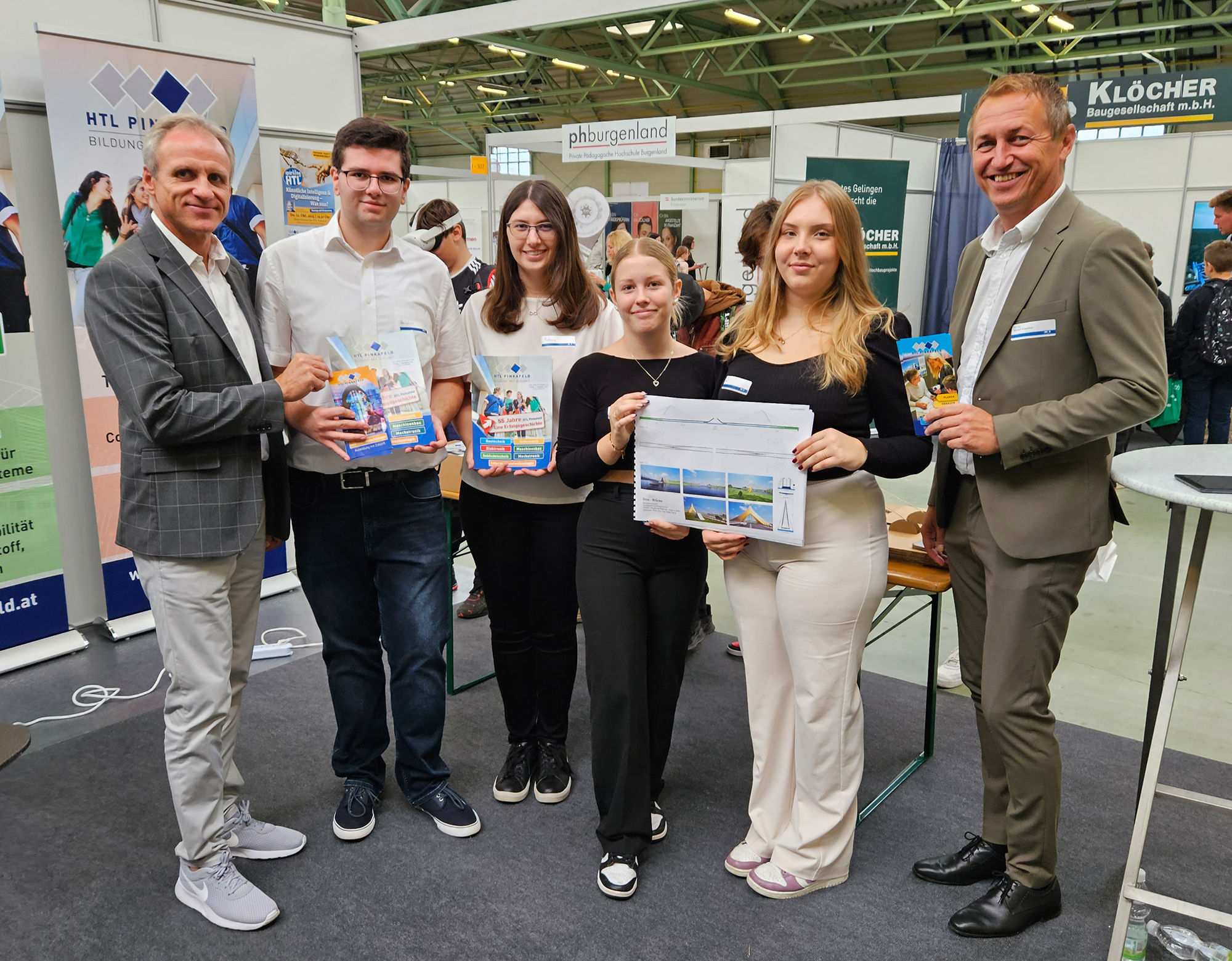 Am Mittwoch, 4. Oktober 2023, fand in der Messe Oberwart die Eröffnung der Bildungs- und Berufsinformationsmesse Burgenland (BiBi) durch Bildungslandesrätin Daniela Winkler statt.Mit dabei waren auch Dir. Wilfried Lercher, Bautechnik-Abteilungsvorständin Ulrike Hartler, Informatik-/IT-Abteilungsvorstand Thomas Gabriel und Elektronik-Werkstättenleiter Harald Stipsits.