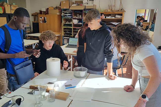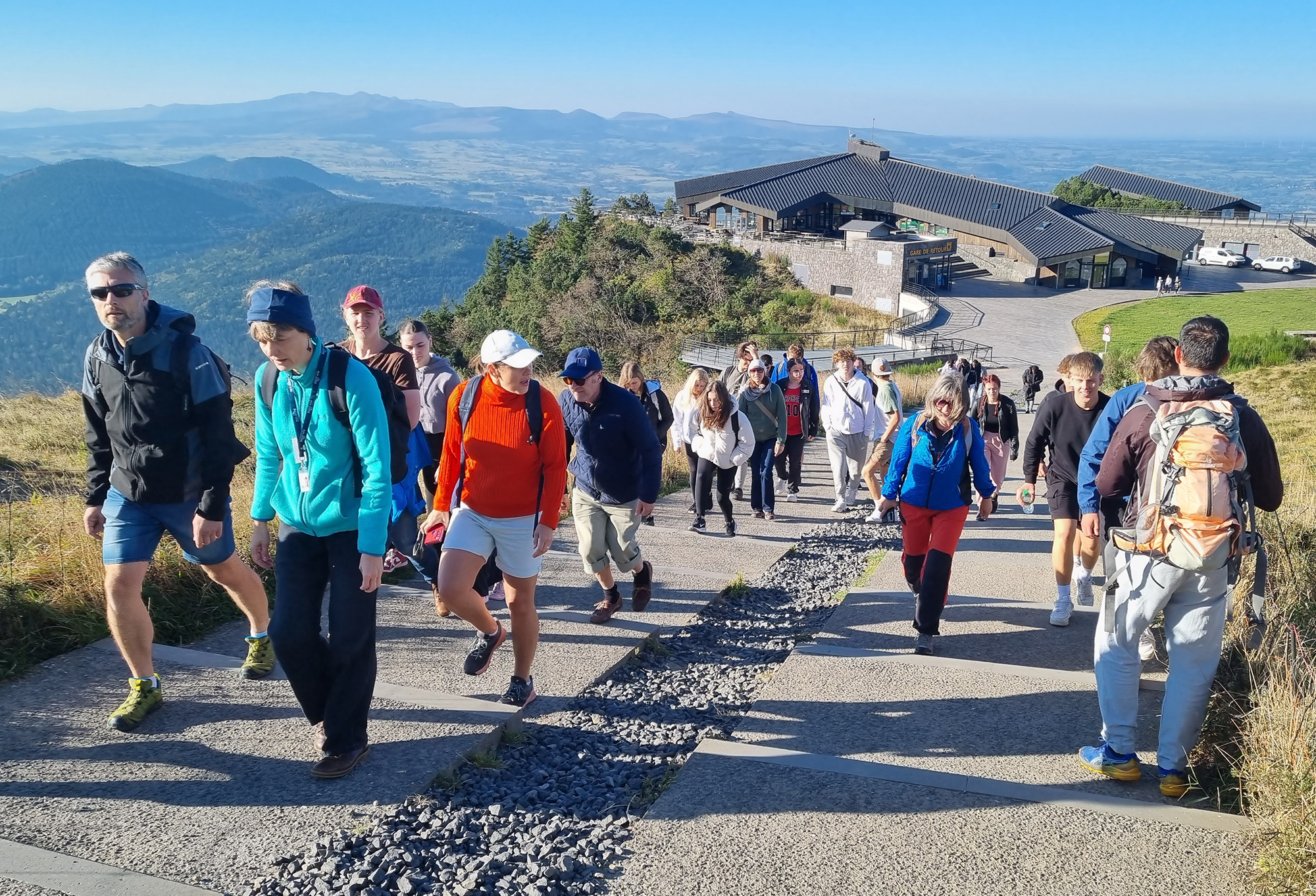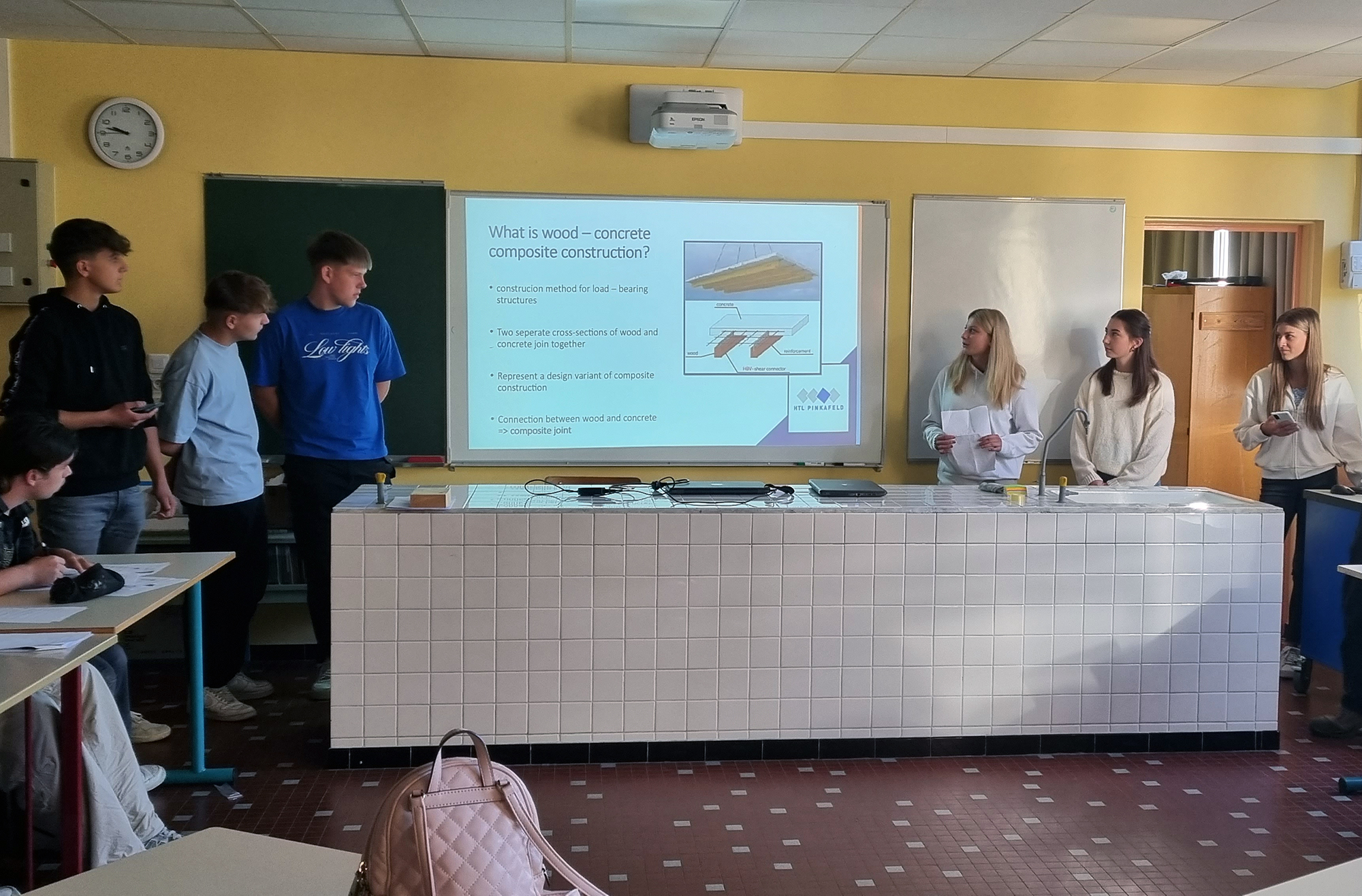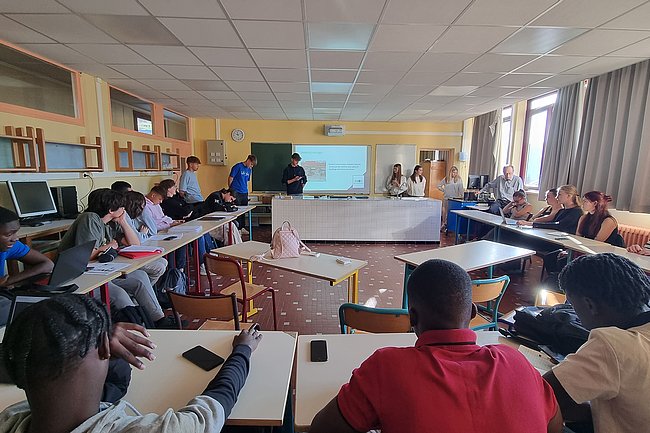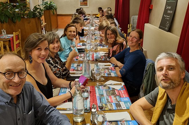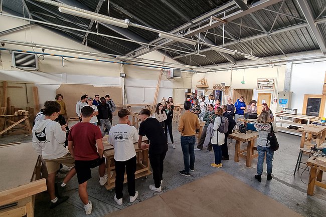 Am Ziel in Murat in der Region Cantal traf das HTL-Team die Projektpartner aus Französisch-Guyana, aus der Tschechischen Republik und von der Partnerschule Lycée Professionnel du Batiment, die auf das Arbeiten mit Holz spezialisiert ist. Eine gemeinsame Aktivität war die Erarbeitung von Sanierungsmöglichkeiten für ein renovierungsbedürftiges Landhaus. Weitere Highlights waren die Besichtigung des noch nicht erloschenen Vulkans Puy de Dome, der Stadt Clermont Ferrand und einer Käsefabrik sowie eine abendliche Verkostung der für die Region typischen Speisen.
