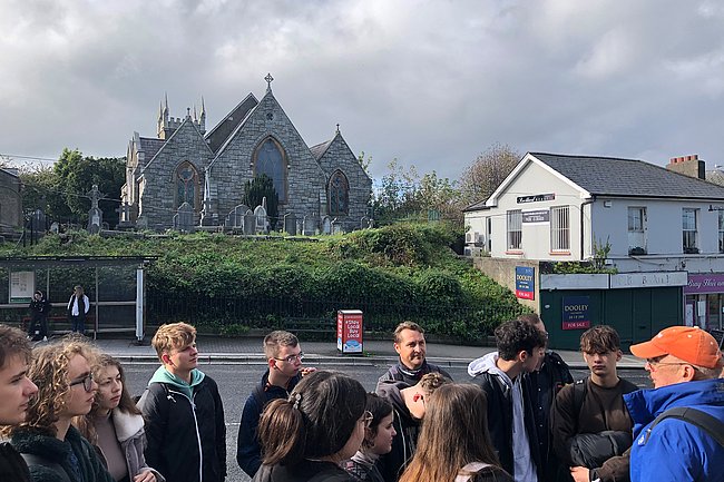 Die Gruppe erlebte irische Gastfreundschaft, bekam Einblicke ins dortige Alltagsleben und konnte Englisch in vielen Situationen verwenden. Die Schüler*innen besuchten einen sehr abwechslungsreichen und erheiternden Sprachunterricht im Pace Language Institute. Zusätzlich erfuhren die Schüler*innen irische Kultur hautnah im Rahmen von sightseeing in Bray und Dublin. Moderne, interaktive Museumstechnologie konnte im EPIC The Irish Immigration Museum erprobt werden, mehr über das “water of life” lernten wir bei einer Tour durch die Teeling distillery, die global players wie Google & Co als bedeutende Arbeitgeber wurden in Dublin gesichtet und die Schönheit der irischen Landschaft konnte bei einem “cliff walk” in Howth erlebt werden. Darüber hinaus reiste die Gruppe an einem Tag nach Nordirland mit einem Zwischenstopp bei den “dark hedges” – bekannt als Filmlocation für Game of Thrones – nach Giant`s Causeway. In Erinnerung wird auch Belfast bleiben, wo sowohl das pro-irische, katholische, als auch das pro-britische, protestantische Viertel – nach wie vor getrennt von einer hohen Mauer – besichtigt wurden.