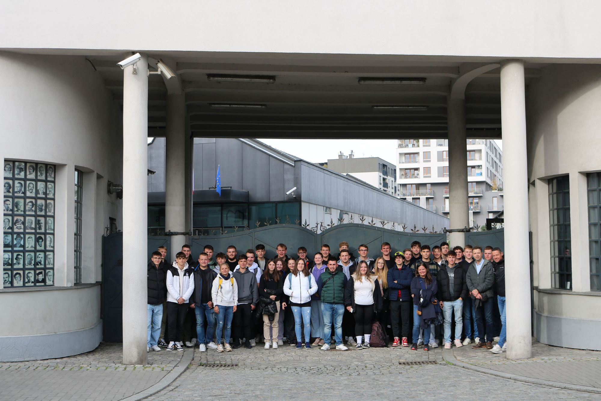 37 Schülerinnen und Schüler des vierten Jahrgangs der Gebäudetechnik-Abteilung unternahmen gemeinsam mit zwei Lehrerinnen und zwei Lehrern von 22. bis 25. Oktober 2023 eine Exkursion ins südliche Polen. Ziele der viertägigen Schulveranstaltung geleitet von zwei Geschichts-Professoren waren die ehemaligen Konzentrationslager Auschwitz, Auschwitz-Birkenau und Plaszów , die aus Steven Spielbergs Film „Schindlers Liste“ bekannte ehemalige Emailwarenfabrik Oskar Schindlers in Krakau, die historische Altstadt und das jüdische Viertel im Stadtteil Kazimierz.
