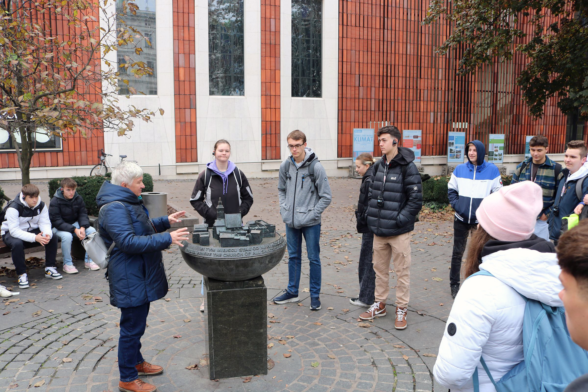 Bei Führungen durch die ehemaligen deutschen Konzentrations- und Vernichtungslager in Auschwitz erhielten die Jugendlichen Einblicke in die unfassbaren Verbrechen des NS-Regimes. Während des Zweiten Weltkriegs wurden hier 1,1 bis 1,5 Millionen europaweit gefangengenommene Menschen ermordet, etwa 90 Prozent waren Juden. Die heutigen Gedenkstätten mit ihren zahlreichen Relikten vermitteln auch 78 Jahre nach Kriegsende die Schrecken des Holocaust. Im Krakauer Vorort Plaszów erkundete die Gruppe selbständig das Gelände, auf dem von 1940 bis 1945 ein NS-Zwangsarbeits- und Konzentrationslager bestanden hat. Schautafeln informierten die Exkursionsteilnehmer über diesen Ort, an dem 1993 ein Teil der Dreharbeiten zum US-amerikanischen Spielfilm „Schindlers Liste“ unter der Regie von Steven Spielberg stattgefunden hat.